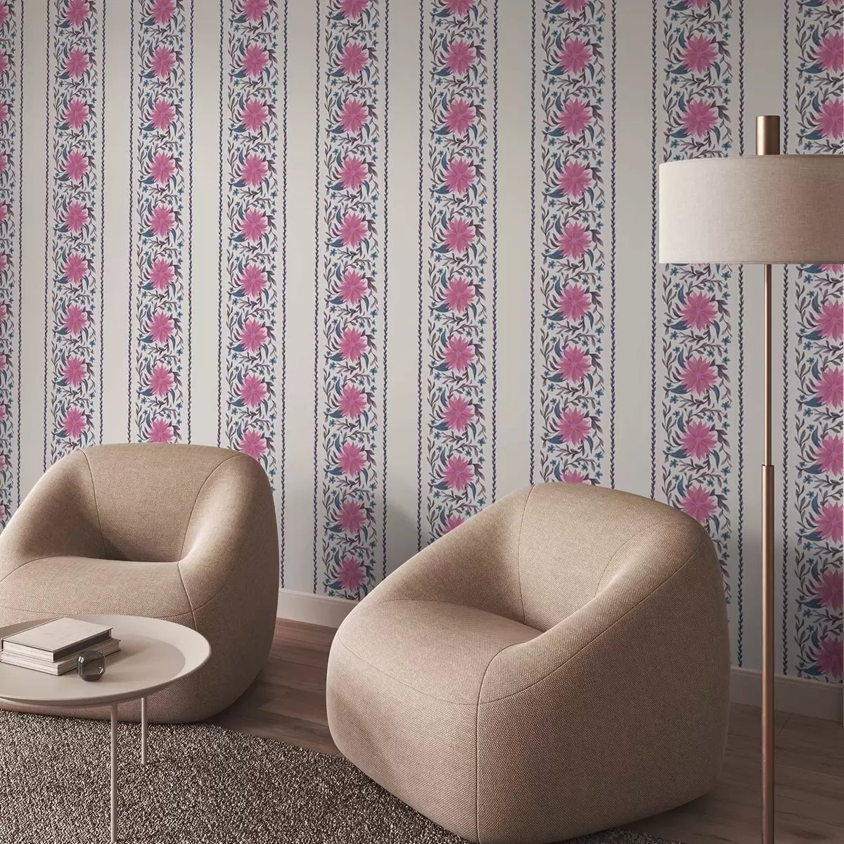 Papiers peints Rayures florales verticales dans les tons rose-violet Nr. a00810