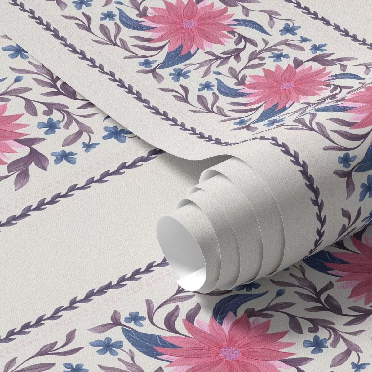 Papiers peints Rayures florales verticales dans les tons rose-violet Nr. a00810