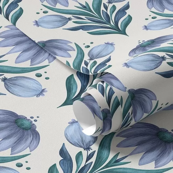 Papiers peints Ornement floral symétrique dans des tons bleu-blanc Nr. a00812v2
