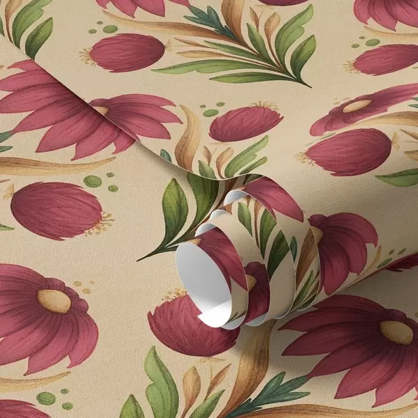 Papiers peints Motif floral symétrique sur fond beige chaud Nr. a00812v6