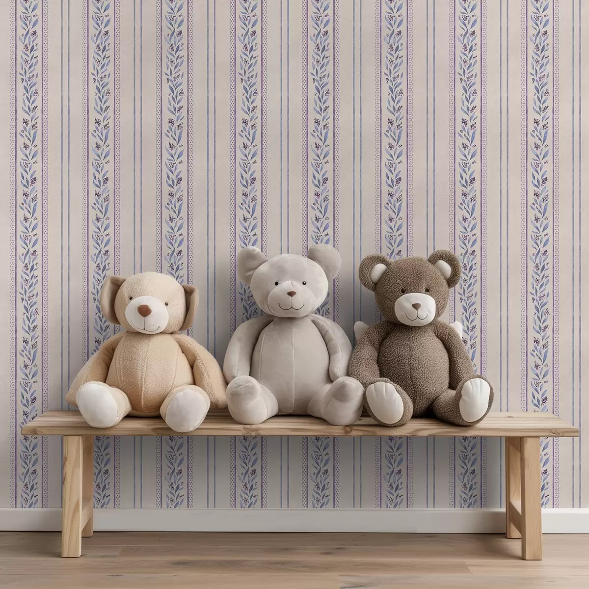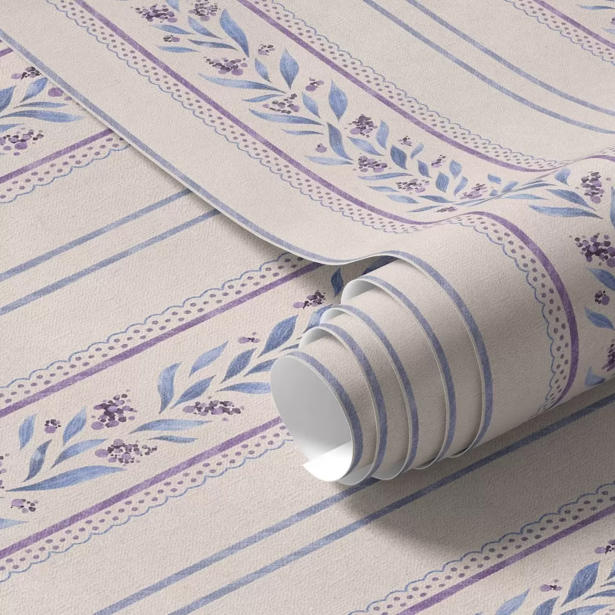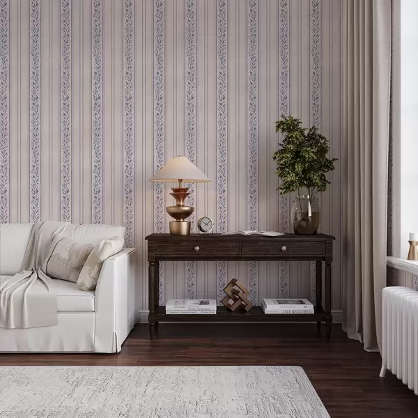 Papiers peints Rayures verticales avec vignettes lavande, beige chaud Nr. a00813
