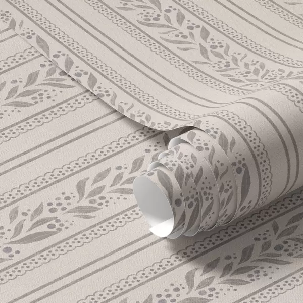 Papiers peints Rayures avec dentelle et brindilles gris-beige Nr. a00814