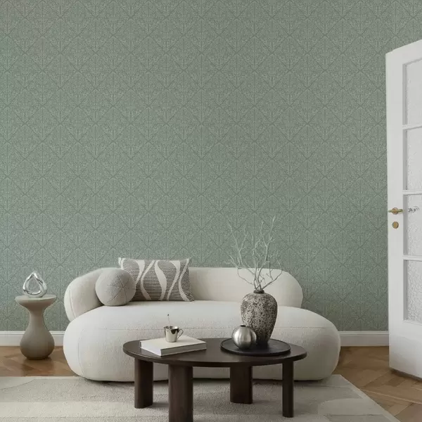 Papiers peints Damassé botanique sur fond menthe-olive Nr. a00815