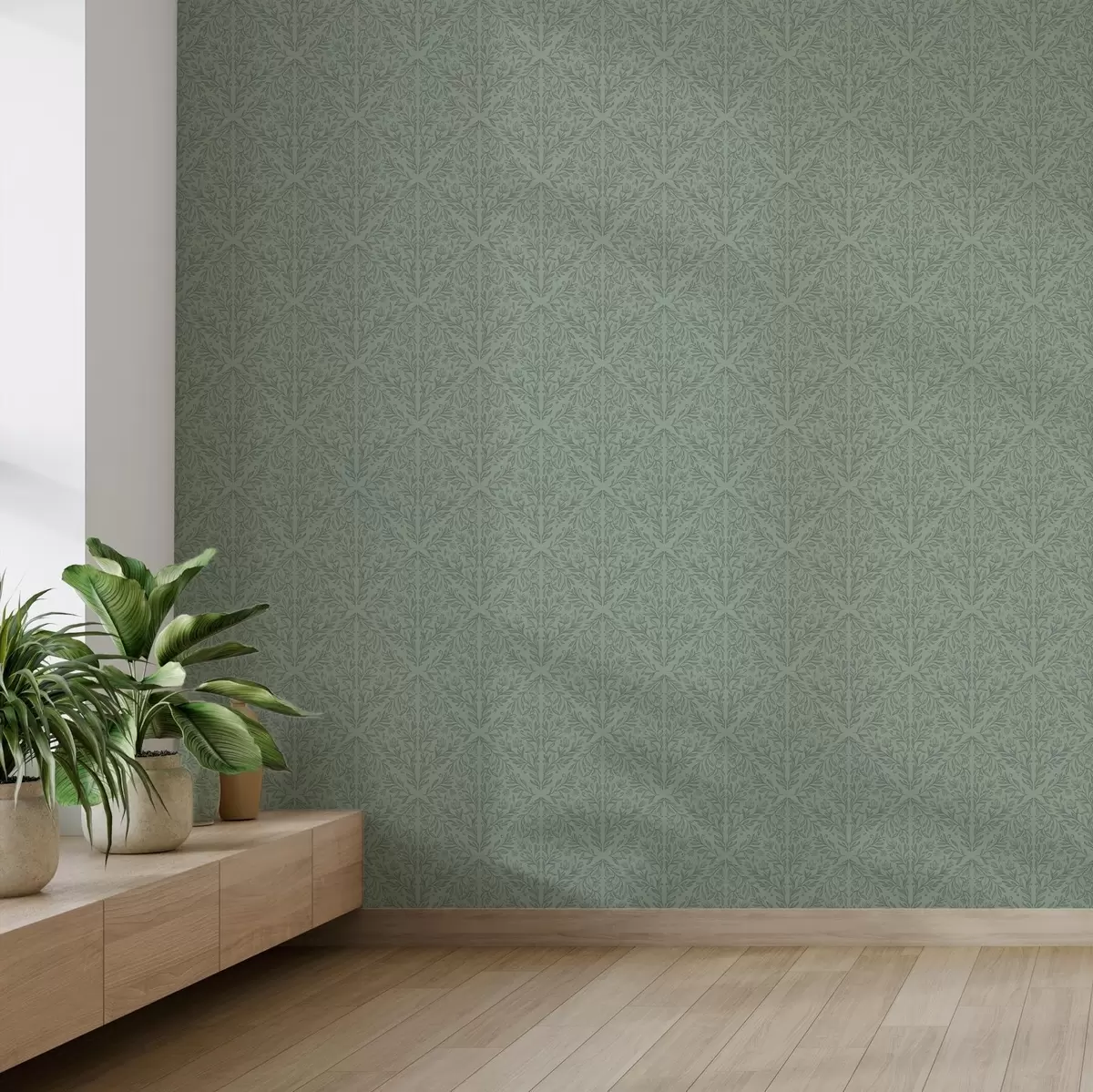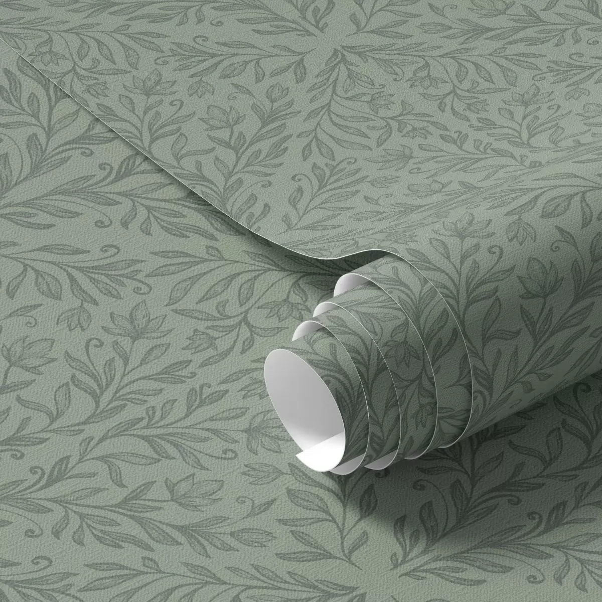 Papiers peints Damassé botanique raffiné dans un vert discret Nr. a00815v1