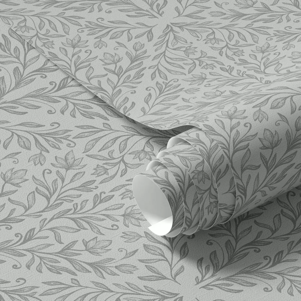Papiers peints Damassé botanique gris clair aux contours doux Nr. a00815v2