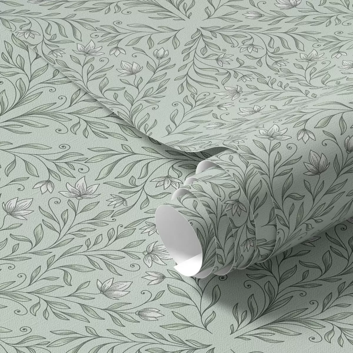 Papiers peints Lacy photographie sur fond vert pastel, profondeur douce Nr. a00815v3