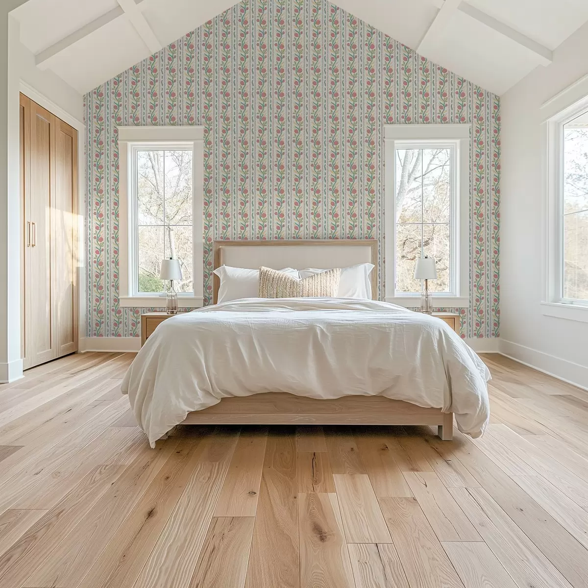 Papiers peints Rayures avec des bourgeons de corail sur fond crème clair Nr. a00816v1
