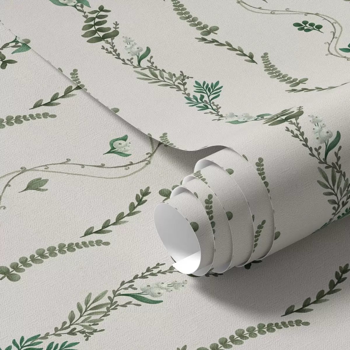Papiers peints Lianes d'eucalyptus fines et verticales sur fond beige Nr. a00817