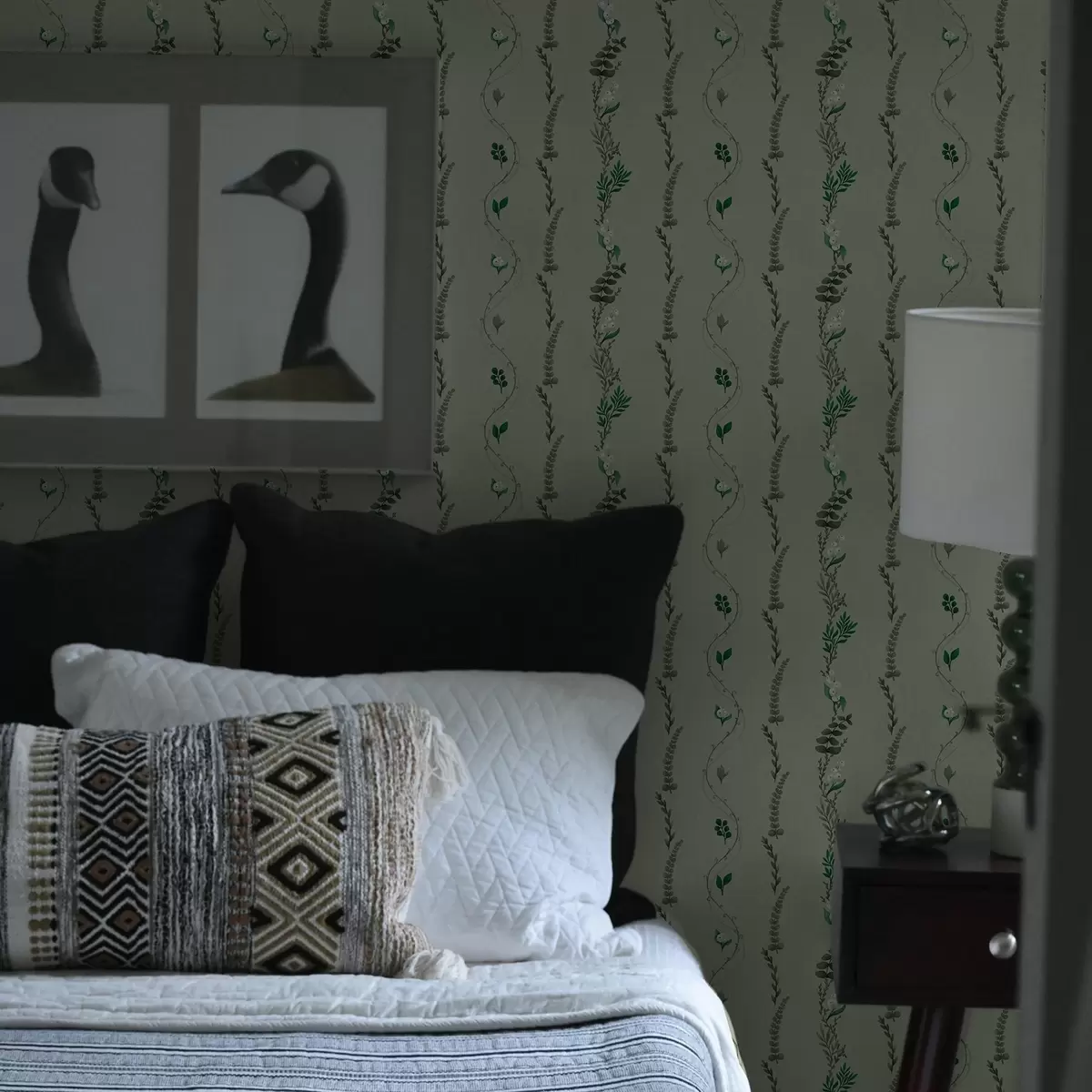 Papiers peints Vignes verticales et brins sur fond vert discret Nr. a00817v1