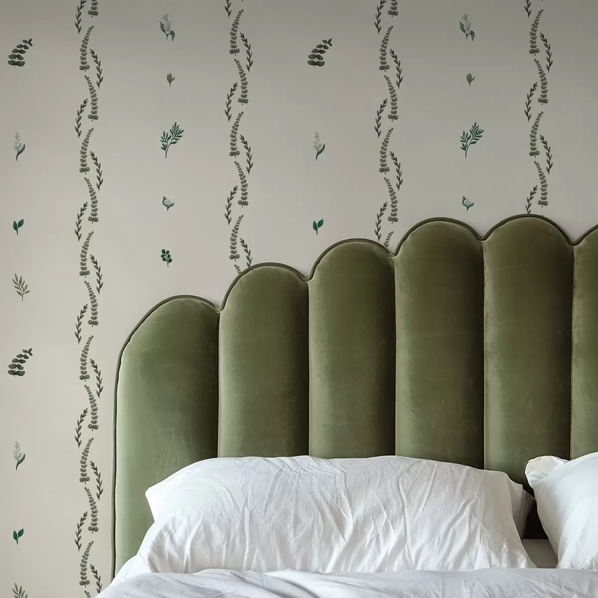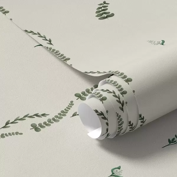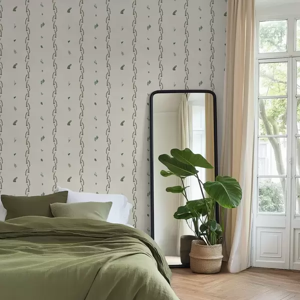 Papiers peints Pousses vertes clairsemées dans un rythme vertical, fond crème Nr. a00818