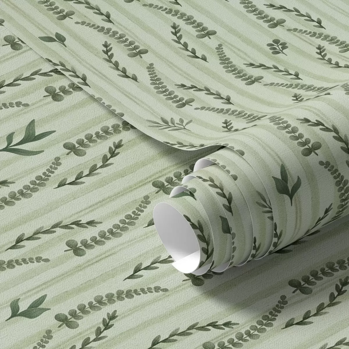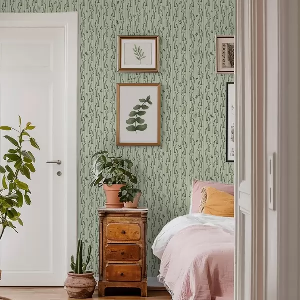 Papiers peints Herbes vertes denses et pousses de menthe rayées Nr. a00819