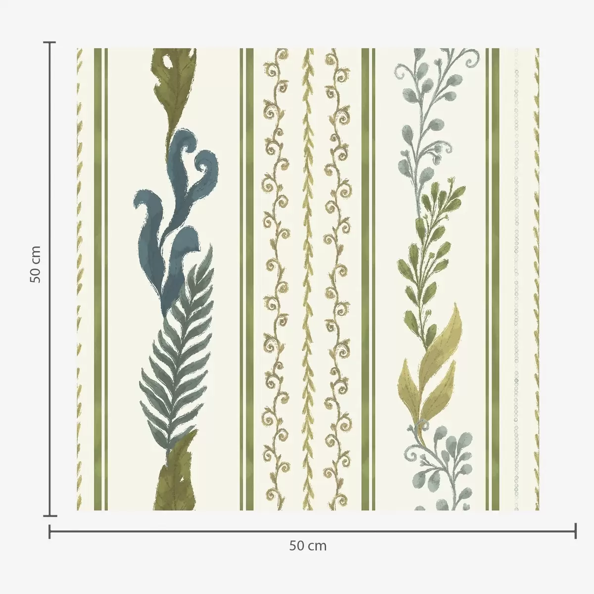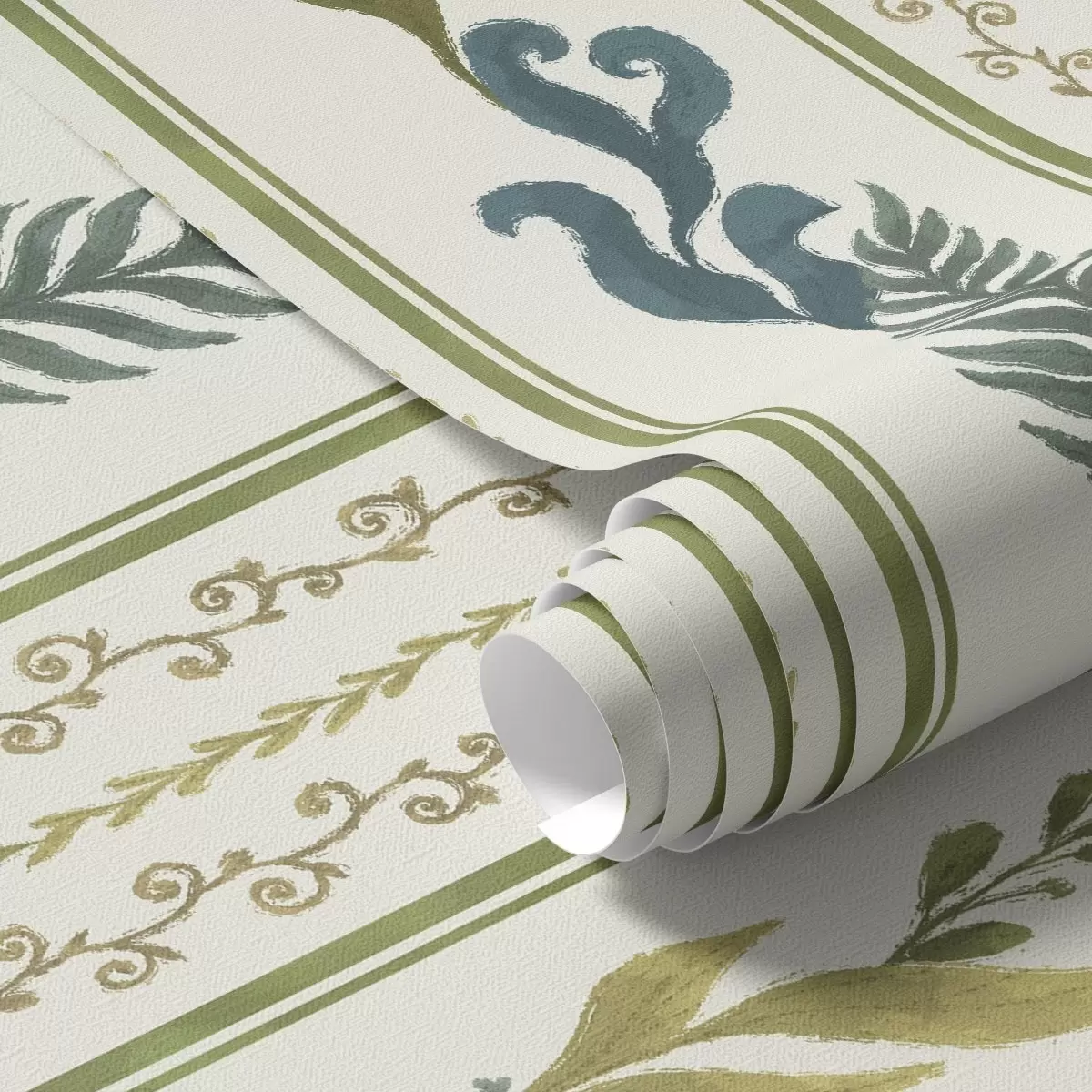 Papiers peints Rayures avec ornements en volutes et grandes branches vertes Nr. a00823