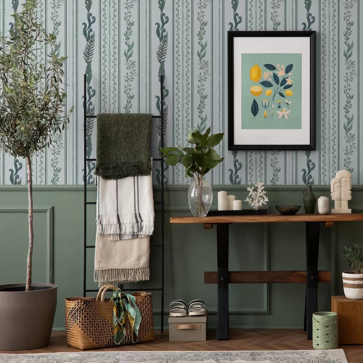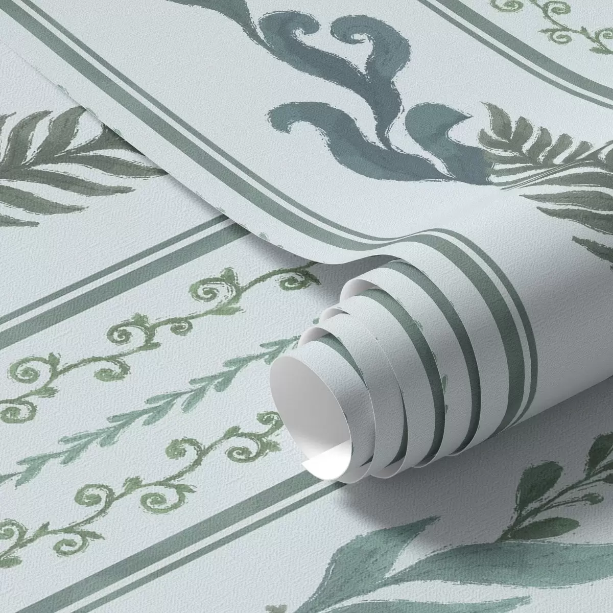Papiers peints Rayures avec branches et boucles sur fond bleu clair froid Nr. a00823v1
