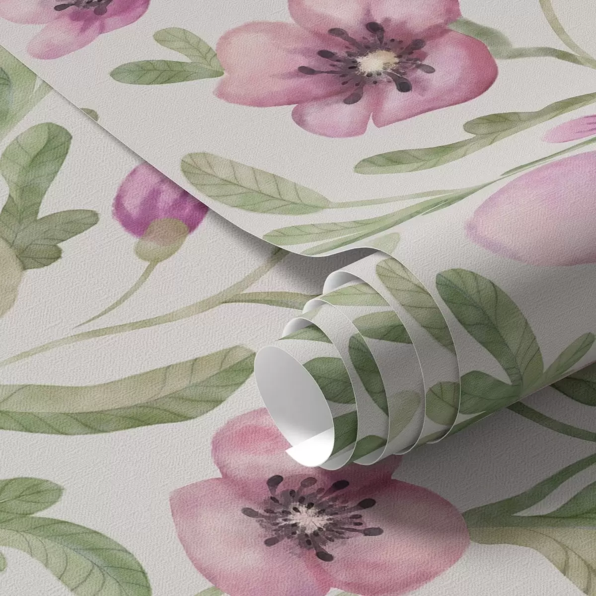 Papiers peints Délicats coquelicots roses avec feuilles peints à l'aquarelle Nr. a00830
