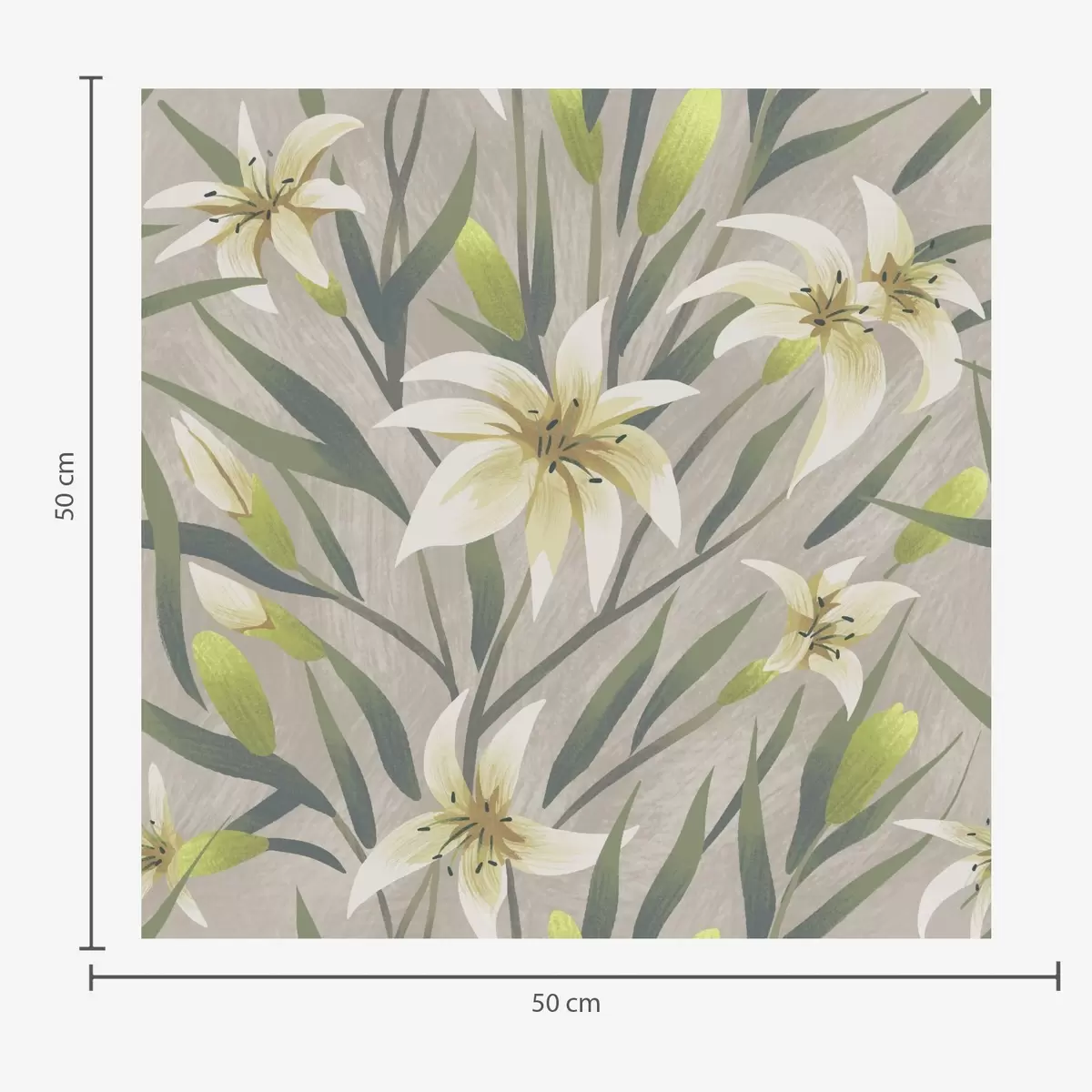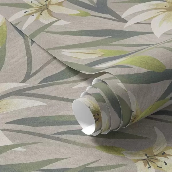 Papiers peints Lys crème avec feuilles sur fond gris-beige Nr. a00837