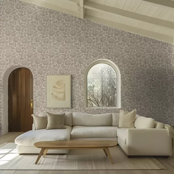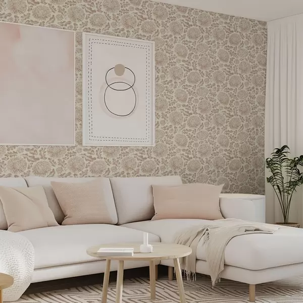 Papiers peints Chrysanthèmes et feuilles de chêne dans des tons doux beige-brun Nr. a00840