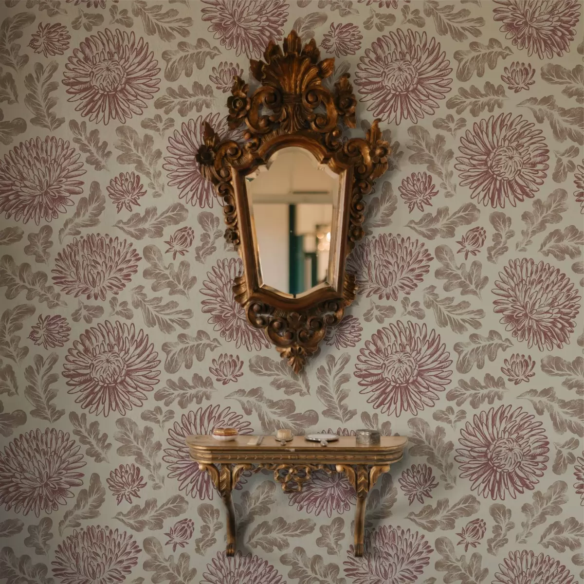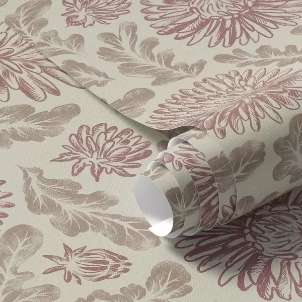 Papiers peints Chrysanthèmes avec des accents de vin sur fond crème Nr. a00840v1