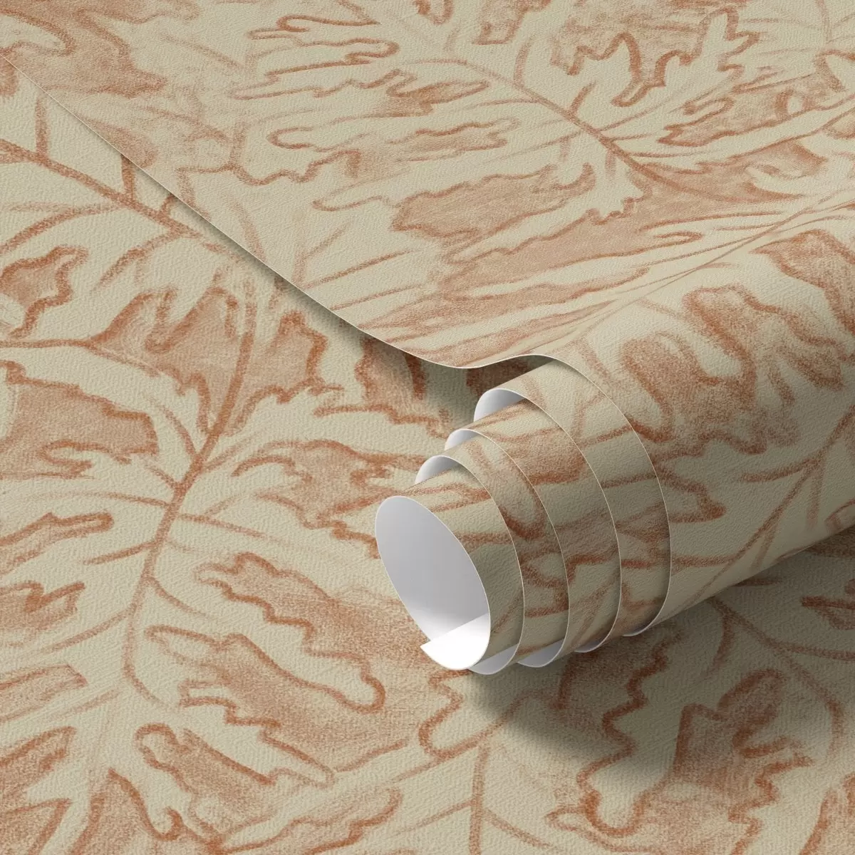 Papiers peints Grandes feuilles de chêne en terre cuite sur fond crème Nr. a00846