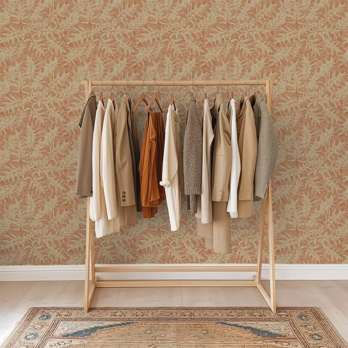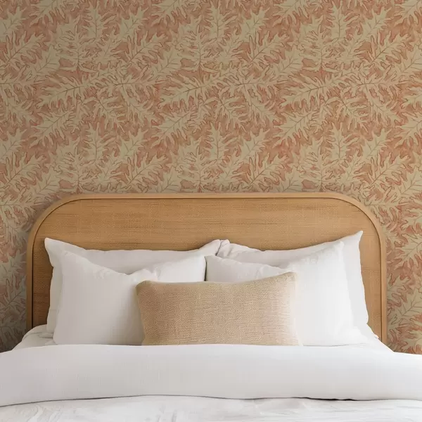 Papiers peints Grandes feuilles de chêne en terre cuite sur fond crème Nr. a00846