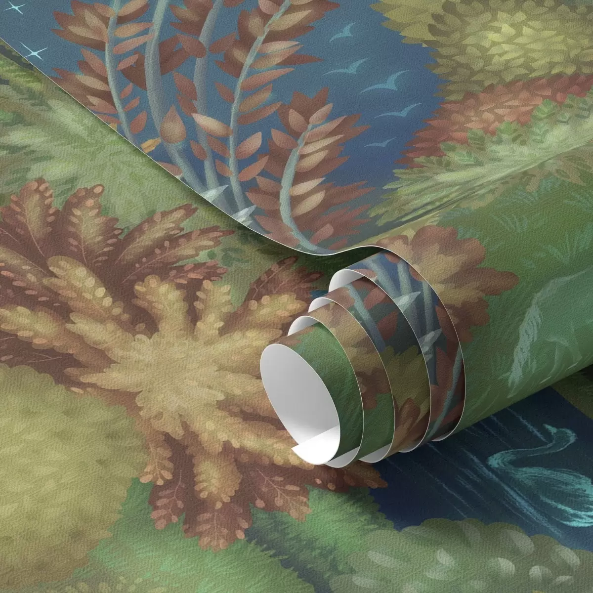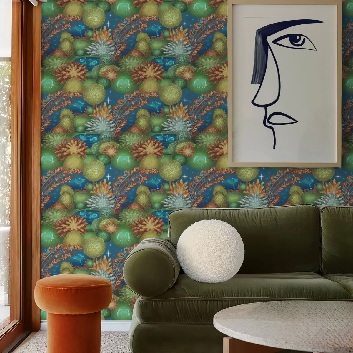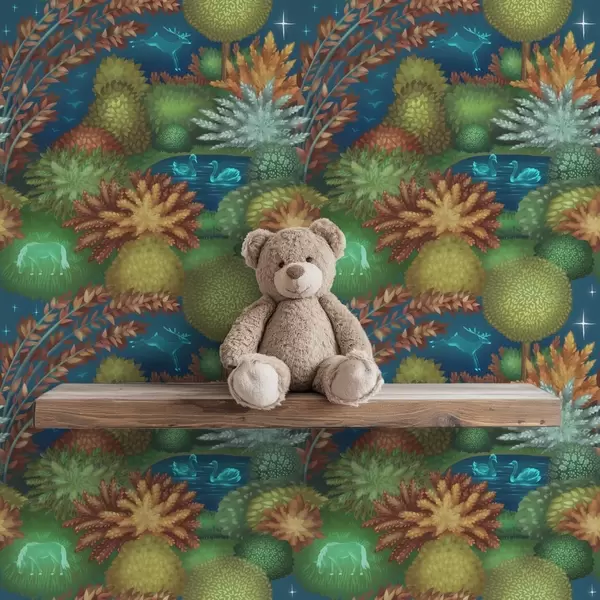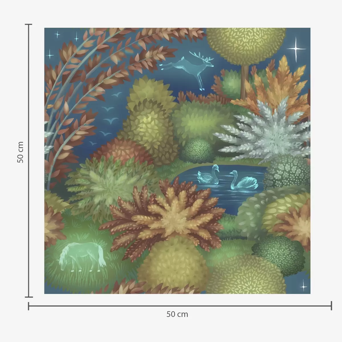Papiers peints Jardin féérique nocturne avec un lac et des animaux lumineux Nr. a00851