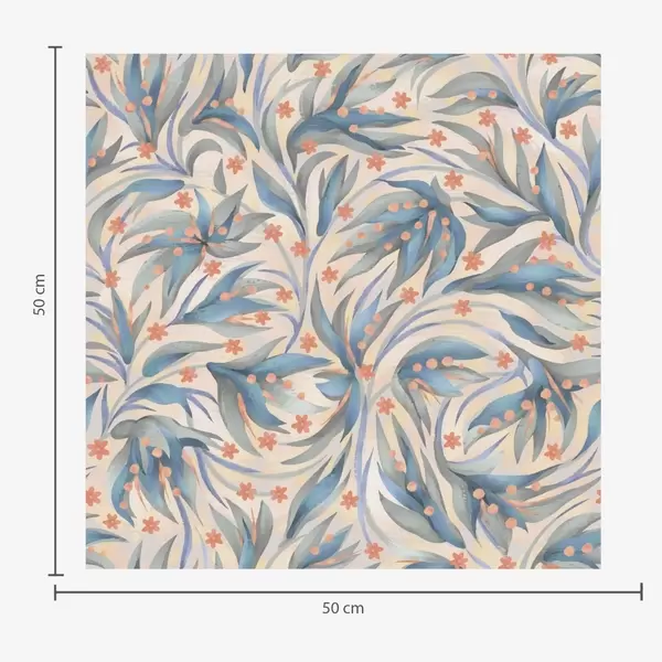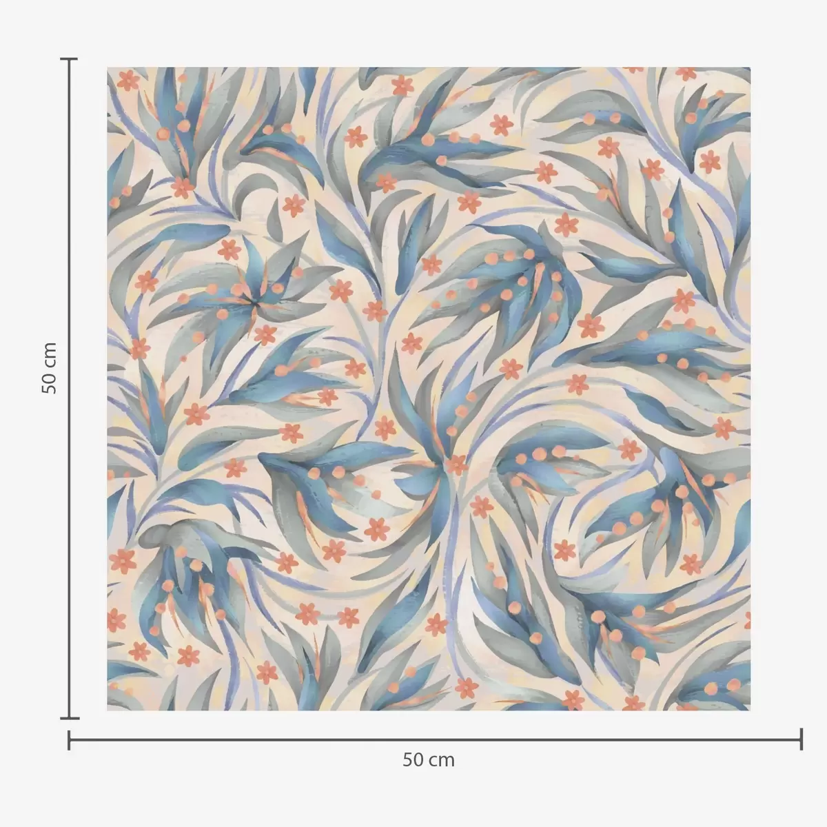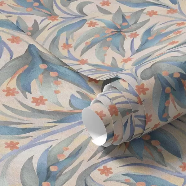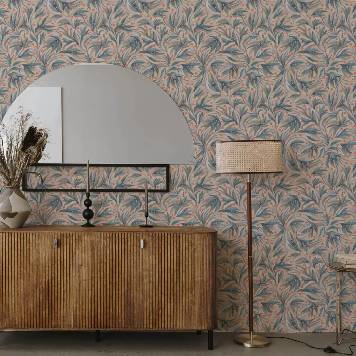 Papiers peints Feuillage bleu abstrait avec fleurs corail Nr. a00852