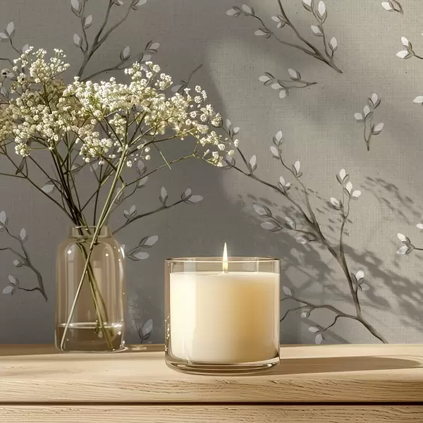 Papiers peints Brindilles avec bourgeons blancs sur fond lin taupe Nr. a00861