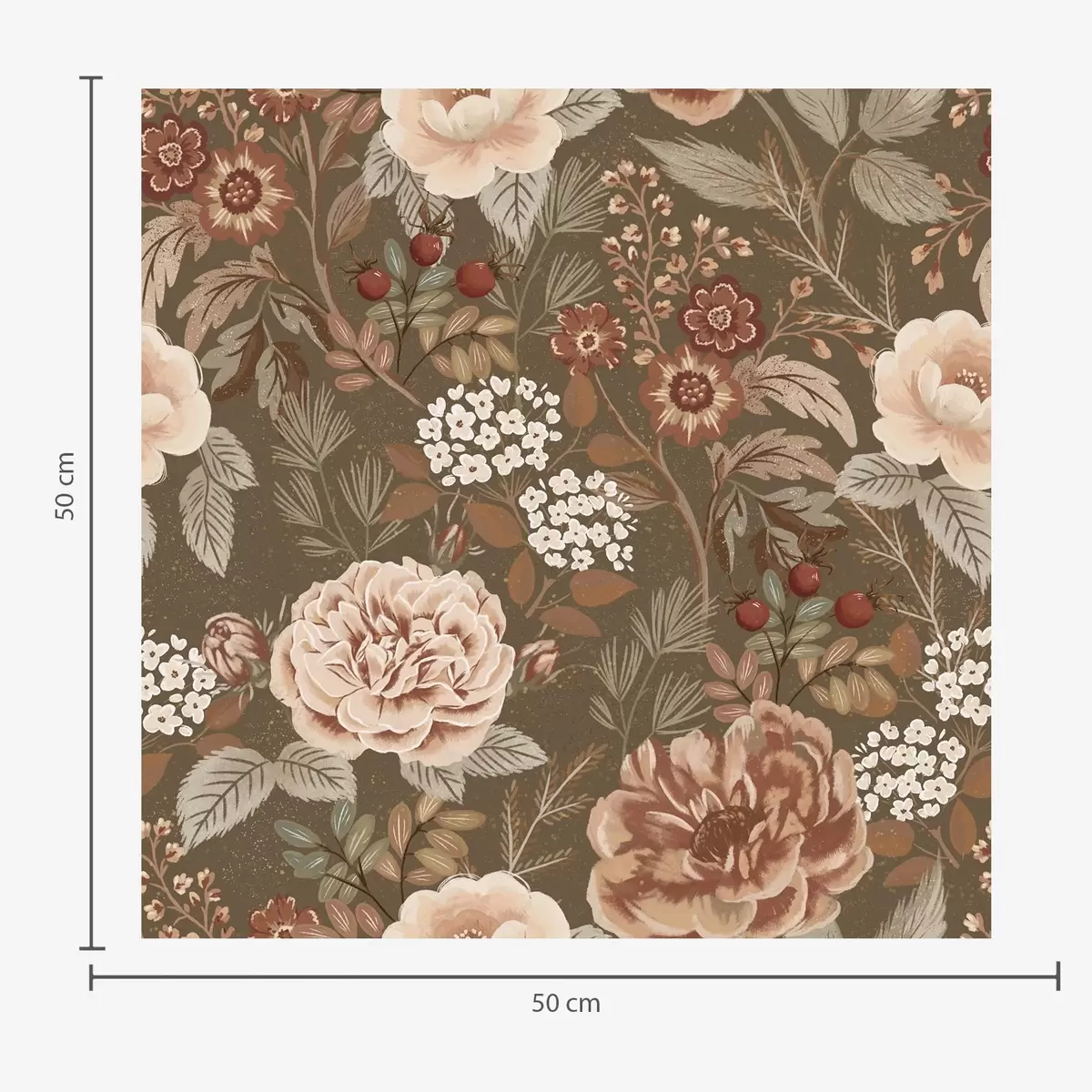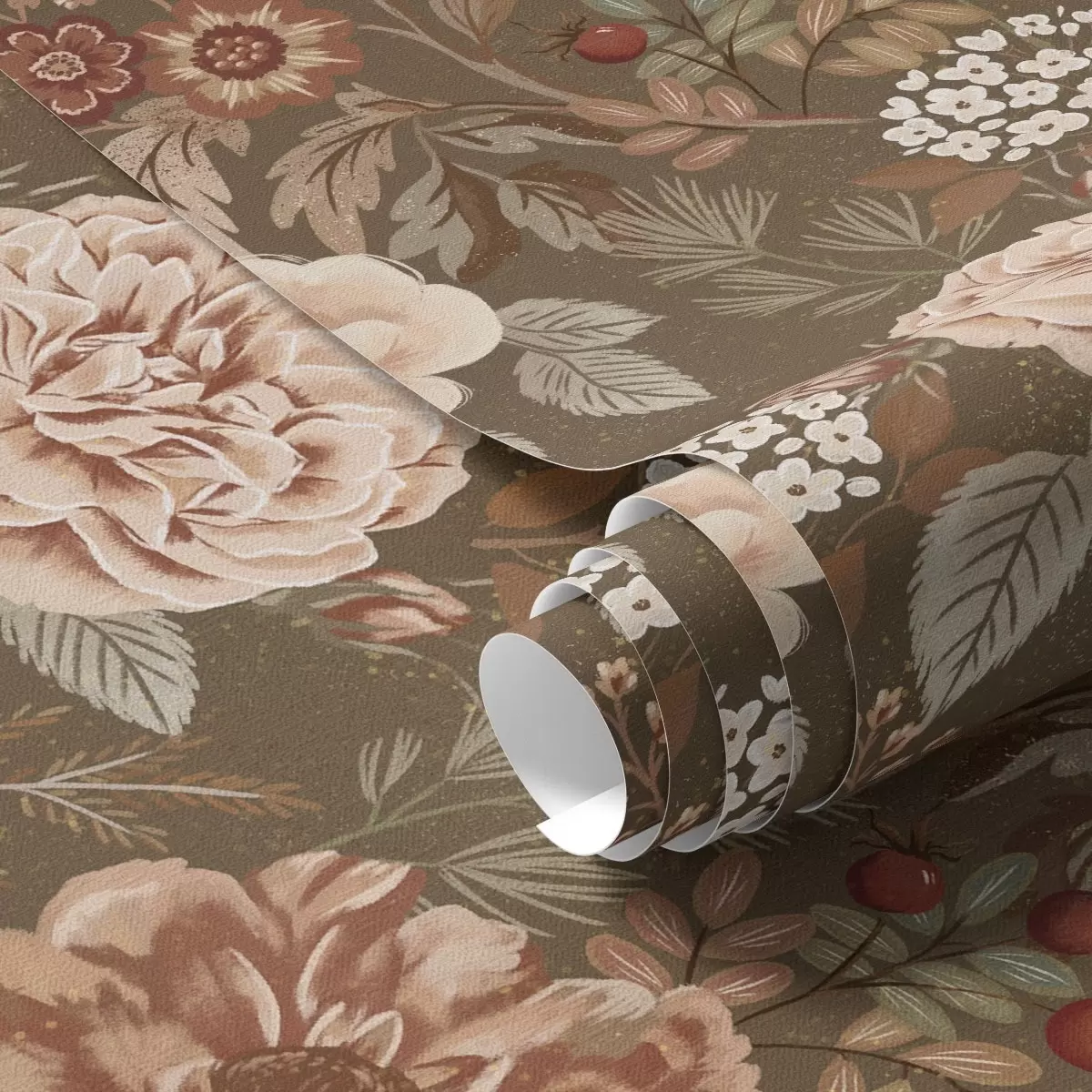 Papiers peints Roses chaudes et baies sur fond brun Nr. a00868