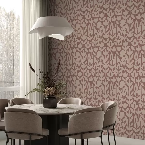 Papiers peints Silhouettes florales géométriques en terre cuite et crème Nr. a00875v2