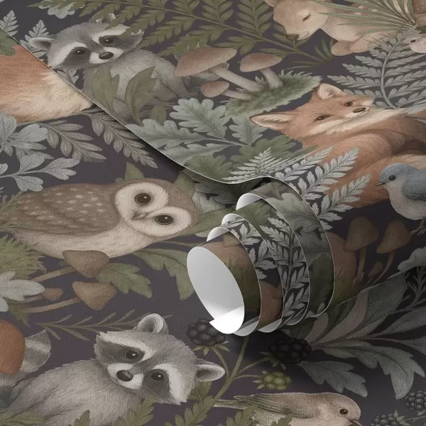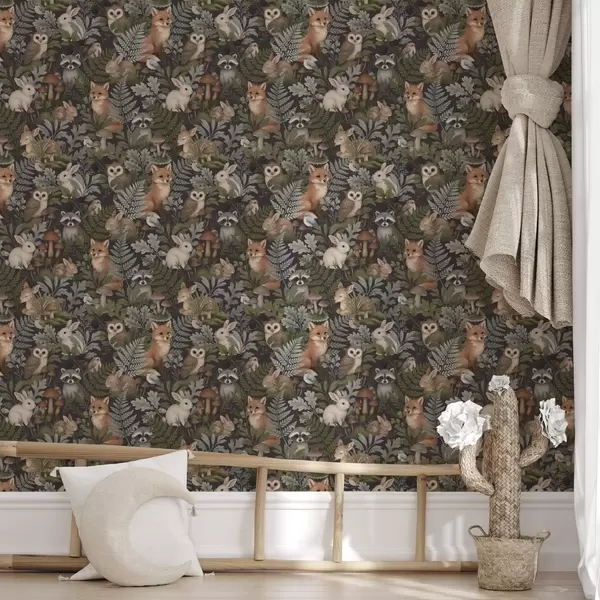 Papiers peints Animaux des bois et fougères sur fond charbon foncé Nr. a00880
