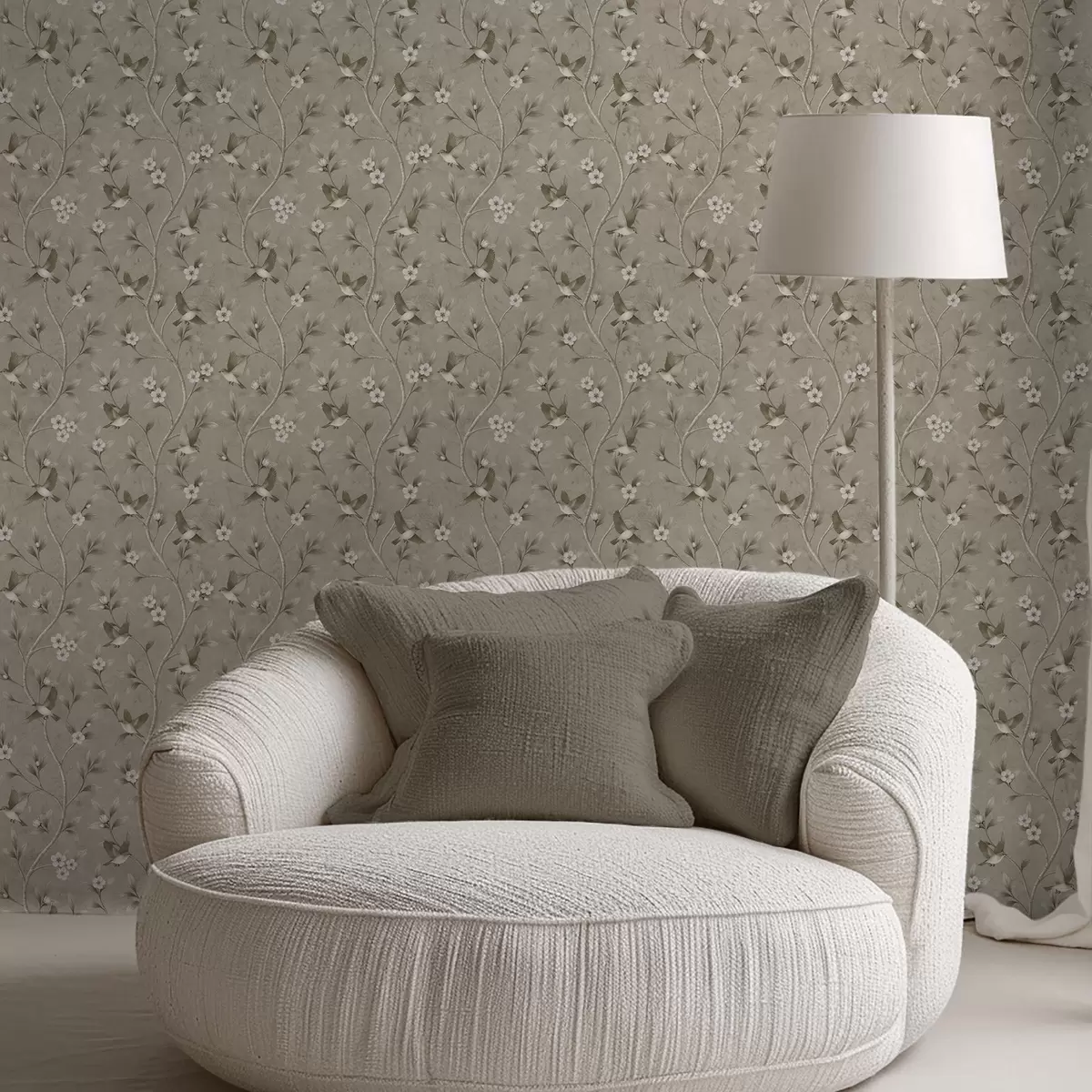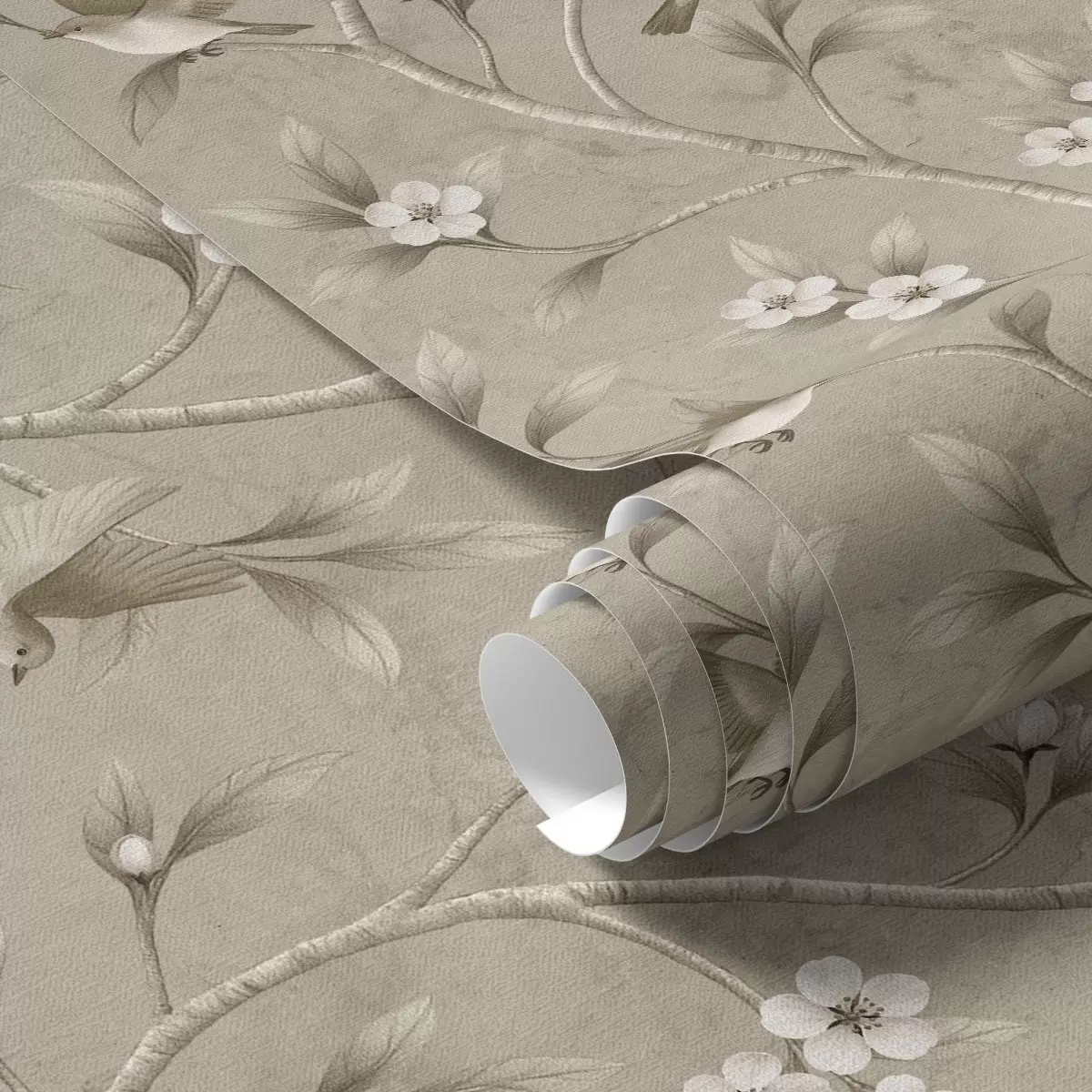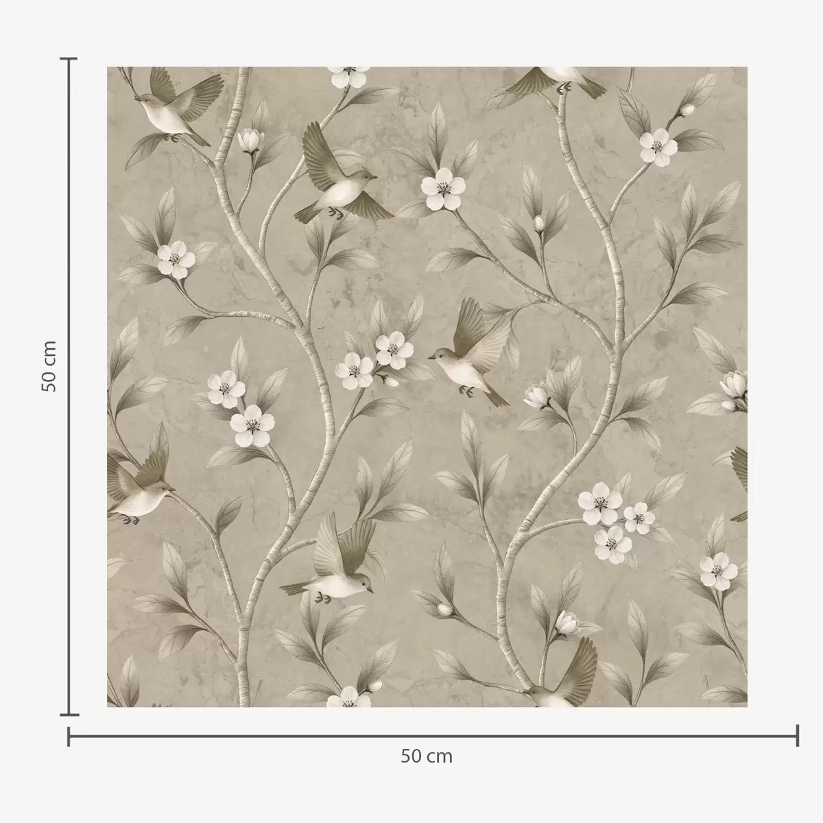 Papiers peints Oiseaux et branches fleuries dans des tons sépia chauds Nr. a00882