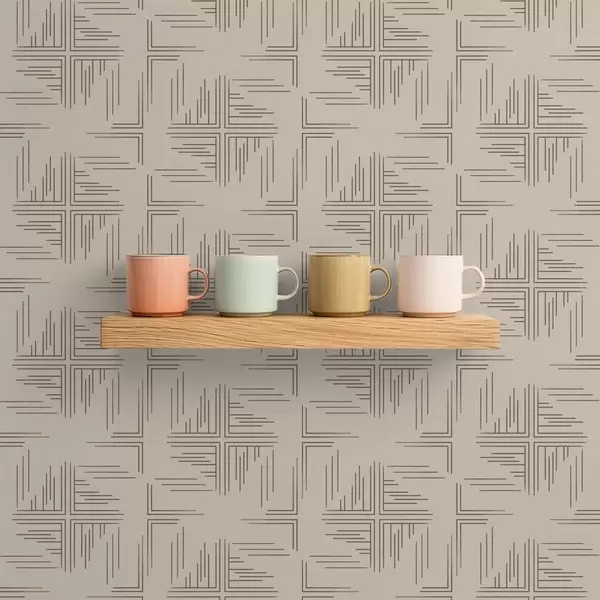 Papiers peints Blocs d'angle en cacao décalés avec accents de lignes dispersées, beige Nr. a00912