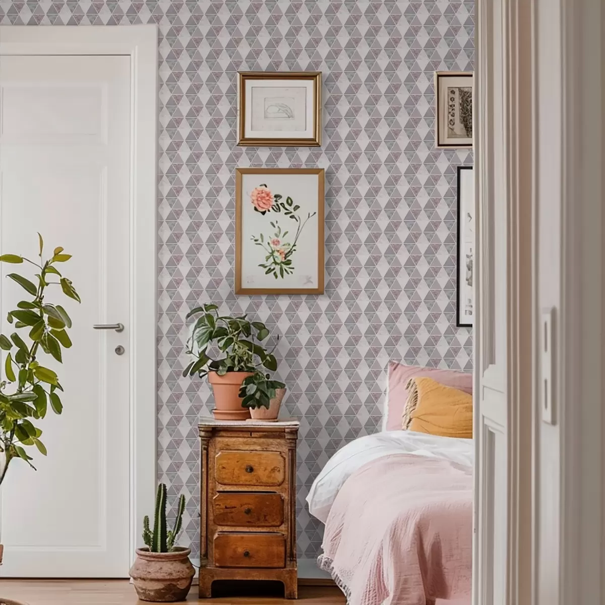 Papiers peints Triangles souples dans des tons gris-rose et poudrés Nr. a00918