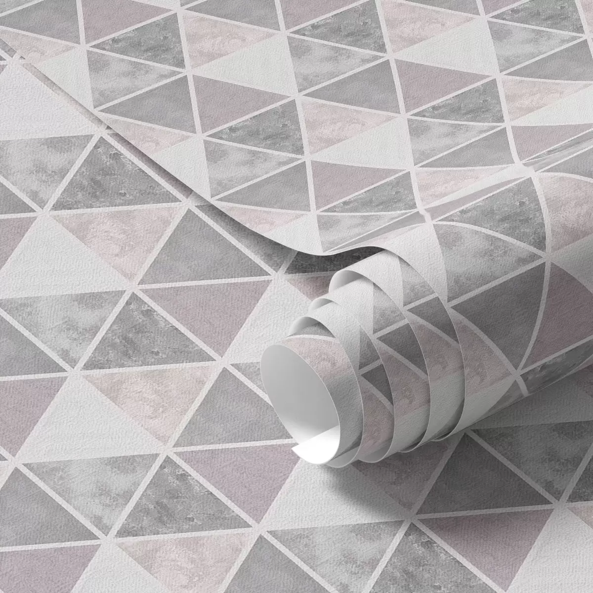Papiers peints Motif géométrique triangulaire dans des tons gris et poudrés Nr. a00920