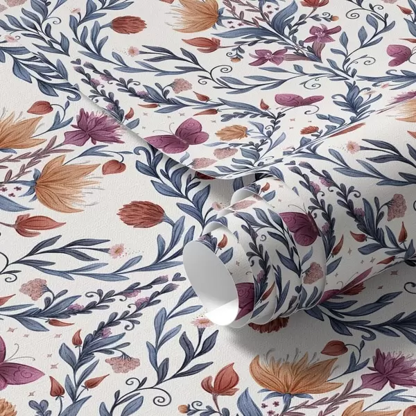Papiers peints Damassé floral avec papillons sur fond crème chaud Nr. a00926v2