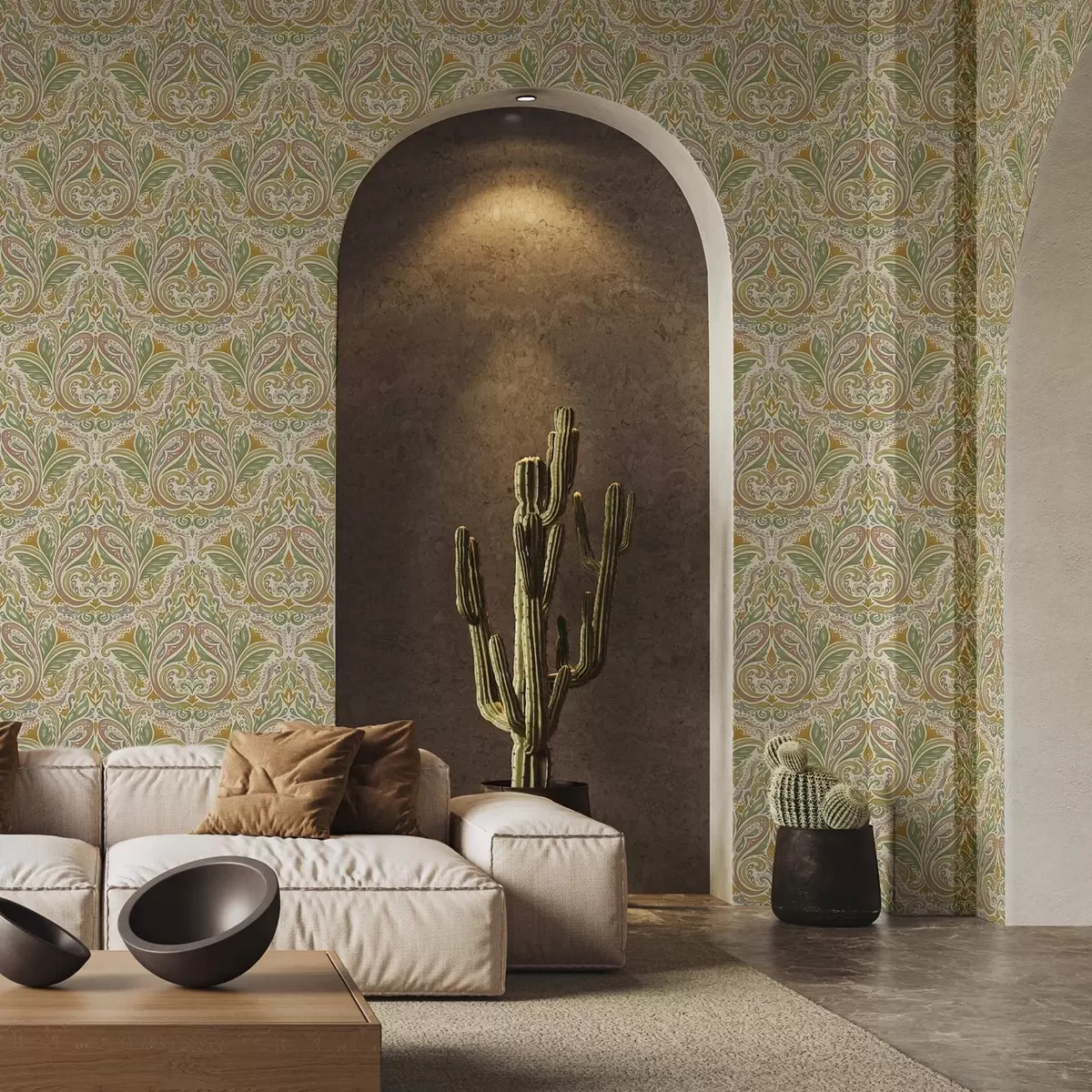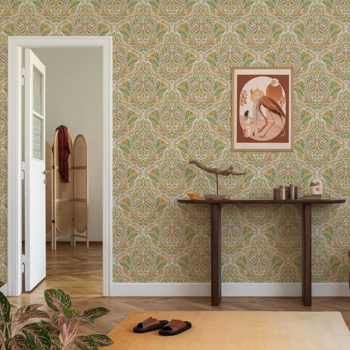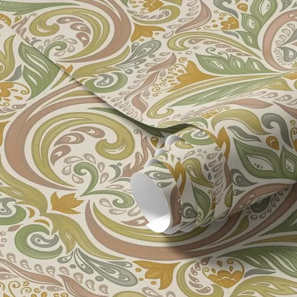Papiers peints Volutes ornementales feuillues dans les tons verts et terracotta Nr. a00927v1