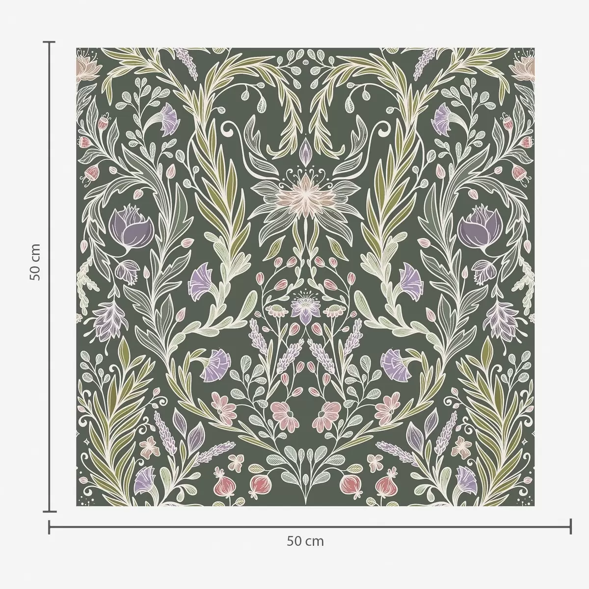 Papiers peints Ornement floral symétrique sur fond vert foncé Nr. a00928
