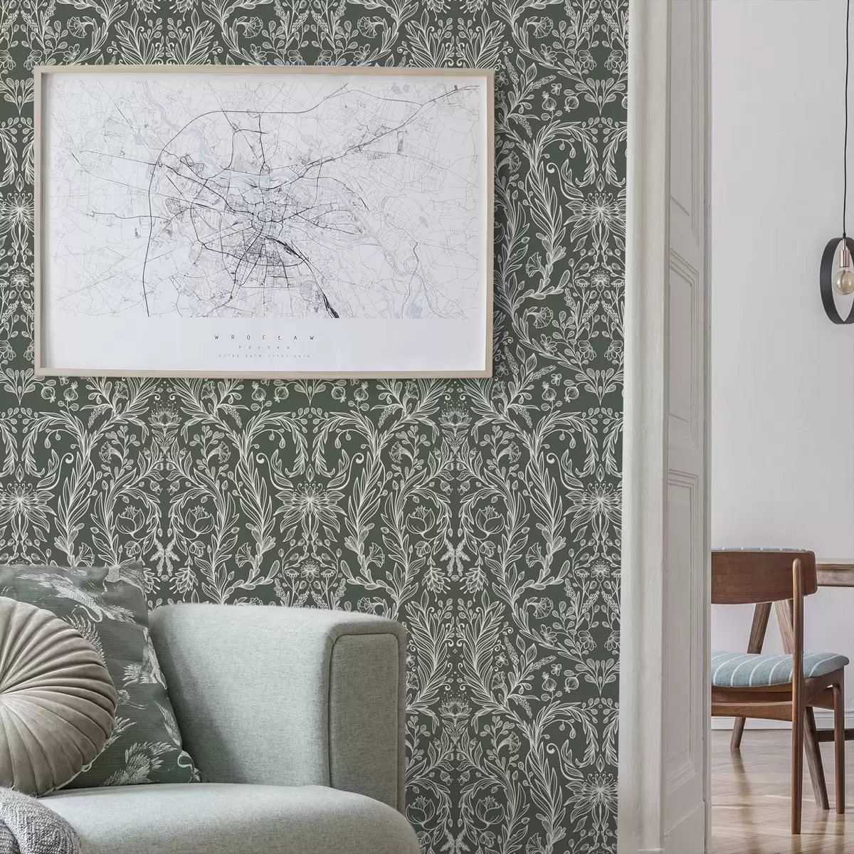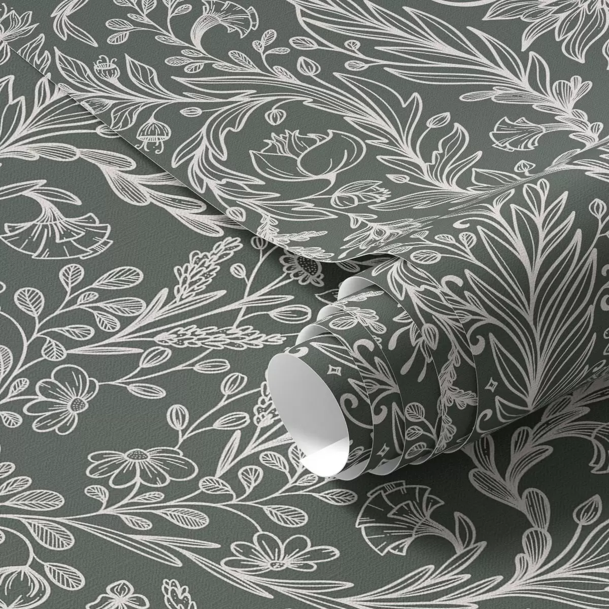 Papiers peints Motif floral linéaire sur fond vert foncé Nr. a00929
