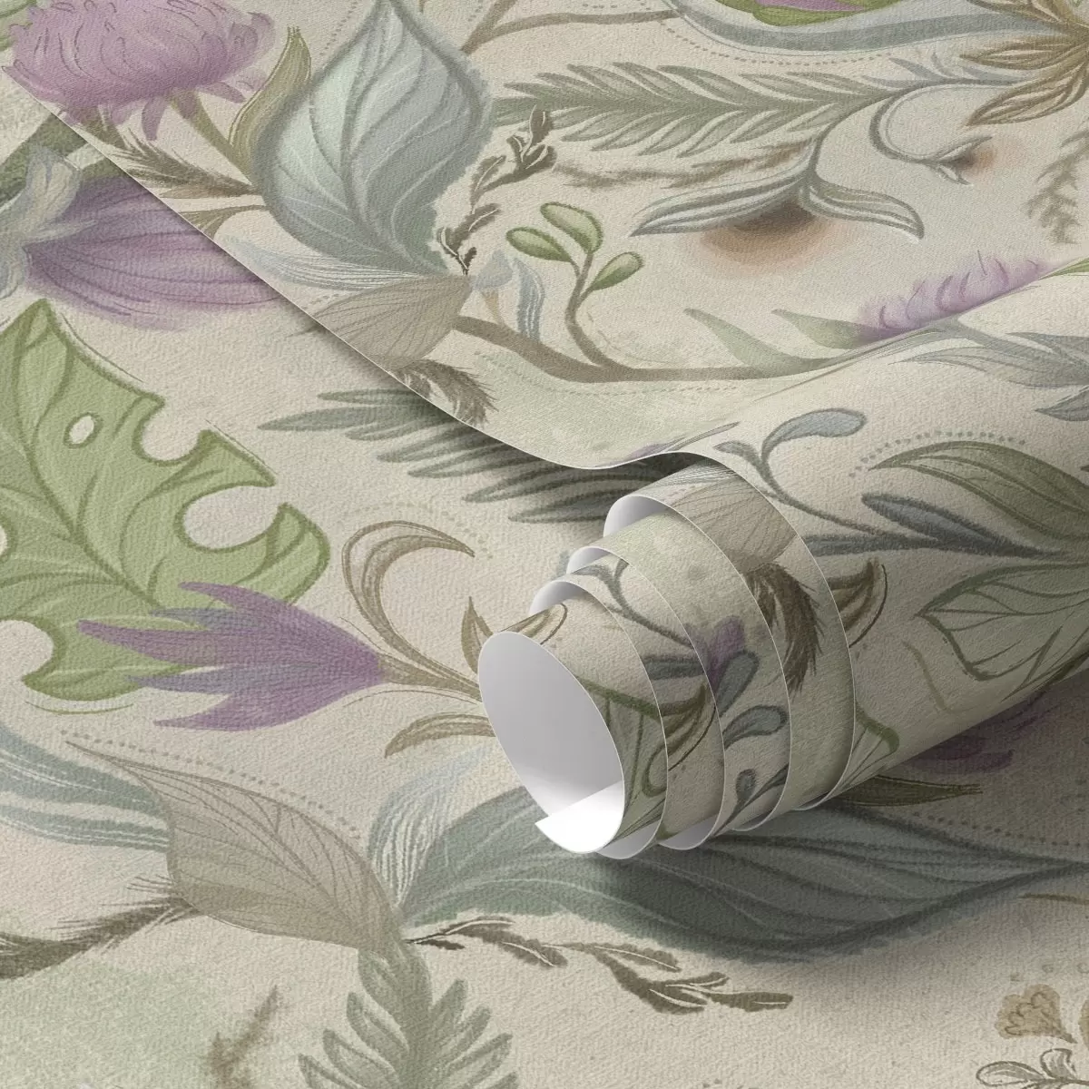 Papiers peints Bourgeons de lilas et verdure délicate sur fond crème Nr. a00930v2