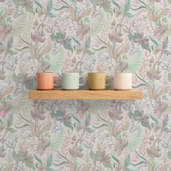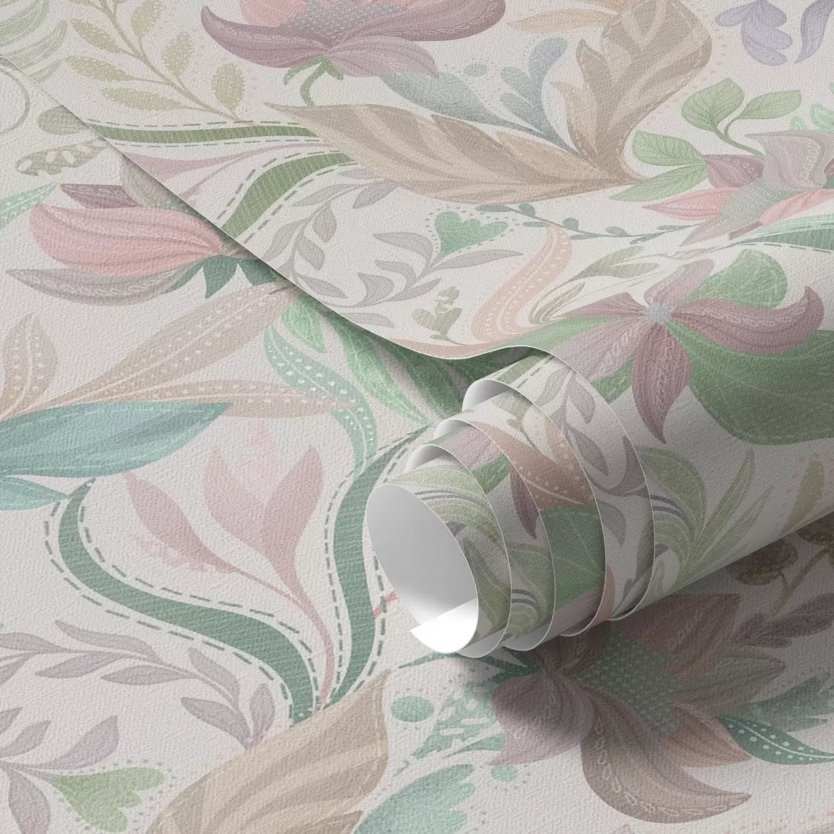 Papiers peints Fleurs et feuilles délicates aux couleurs pastel sur fond clair Nr. a00931