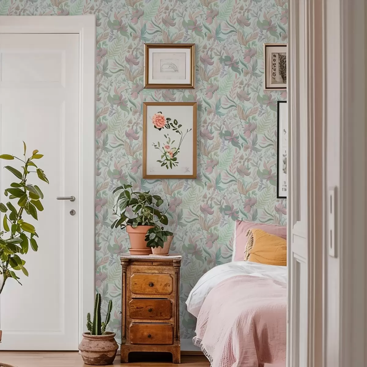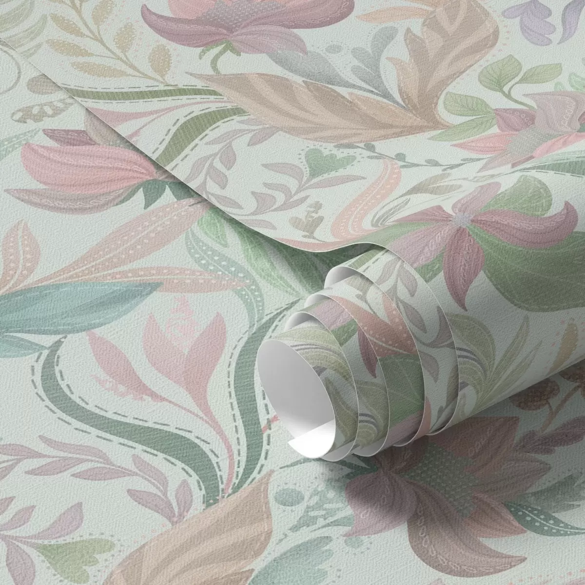 Papiers peints Motifs floraux pastel sur fond menthe tendre Nr. a00931v1
