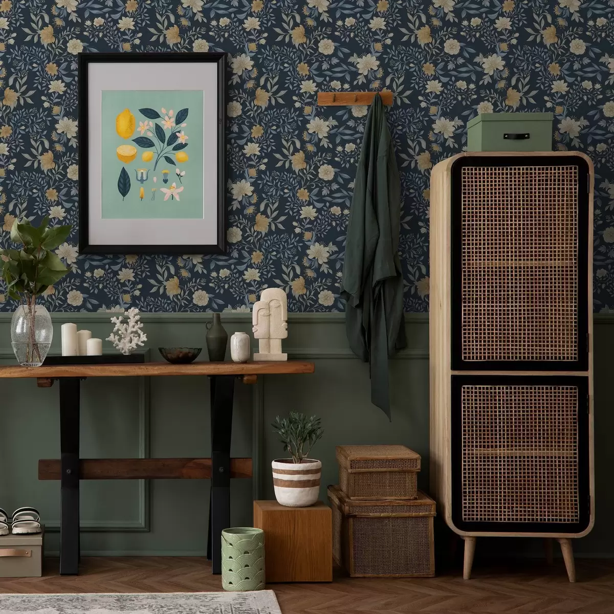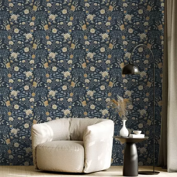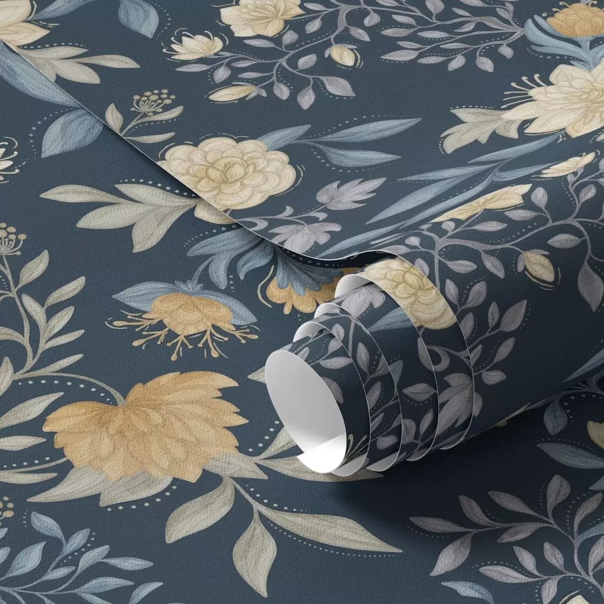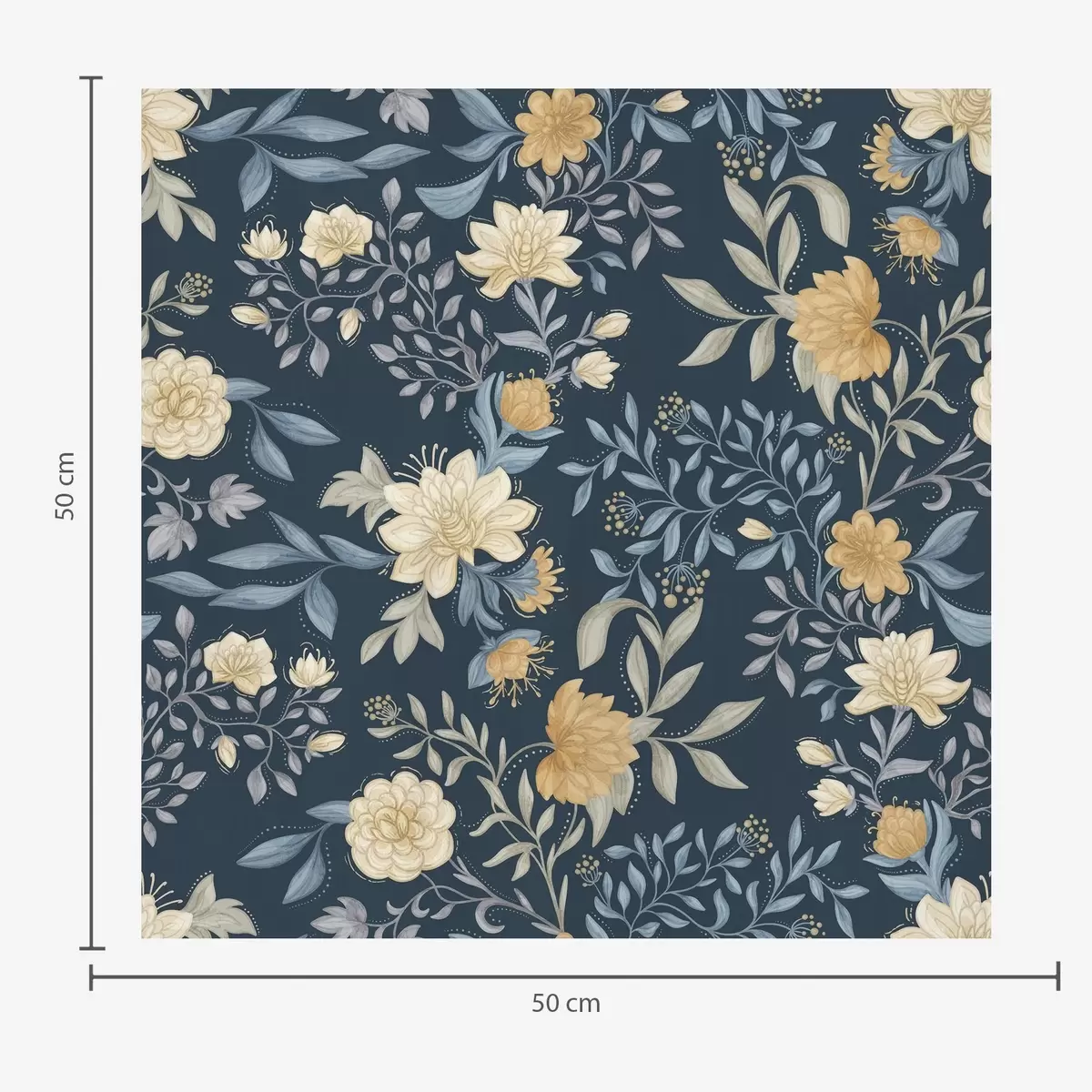 Papiers peints Fleurs jaunes et bleues sur fond bleu foncé Nr. a00934v1