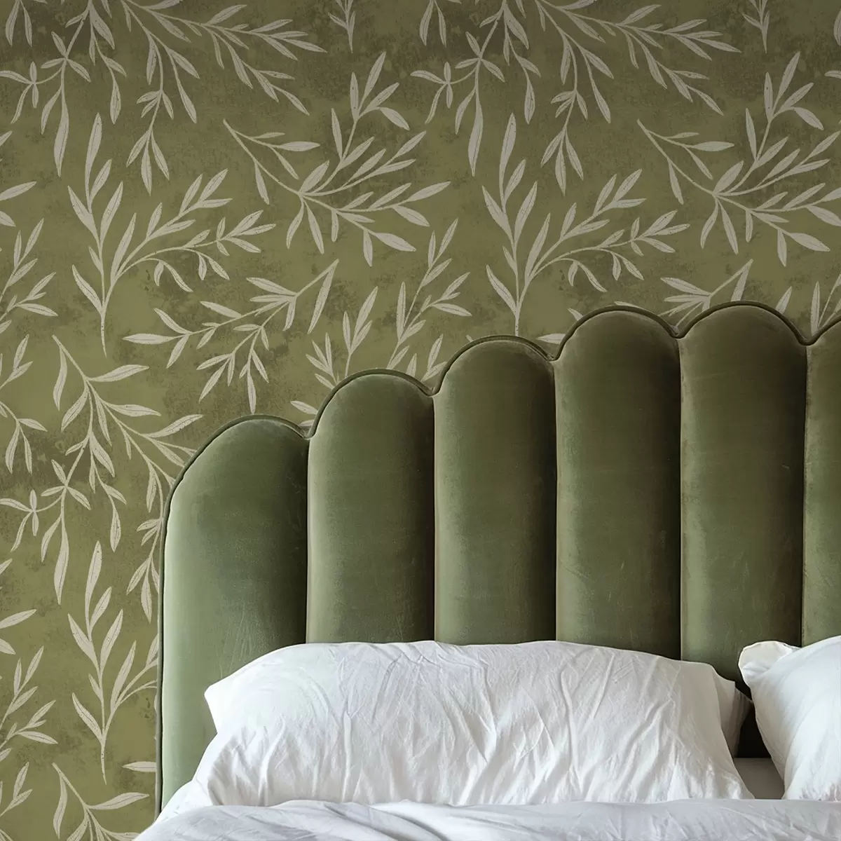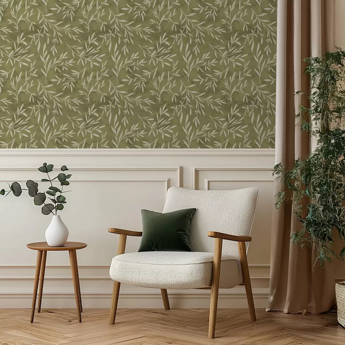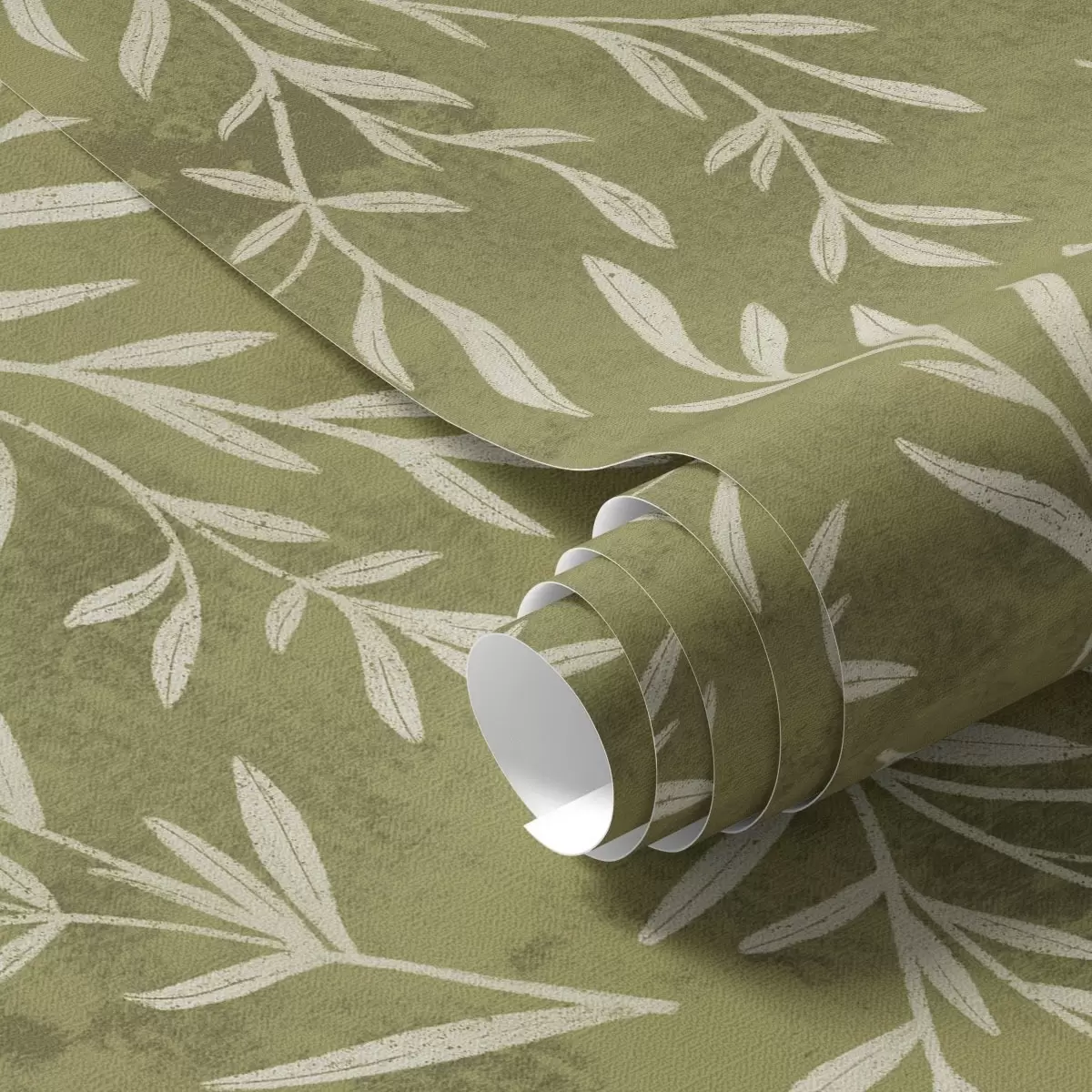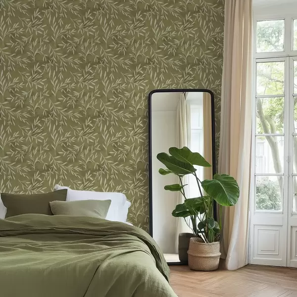 Papiers peints Petites branches blanc crème sur fond texturé olive chaud Nr. a00936v1
