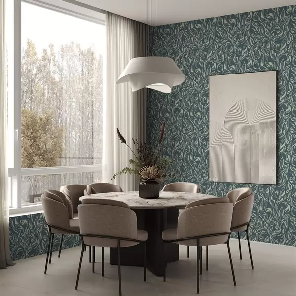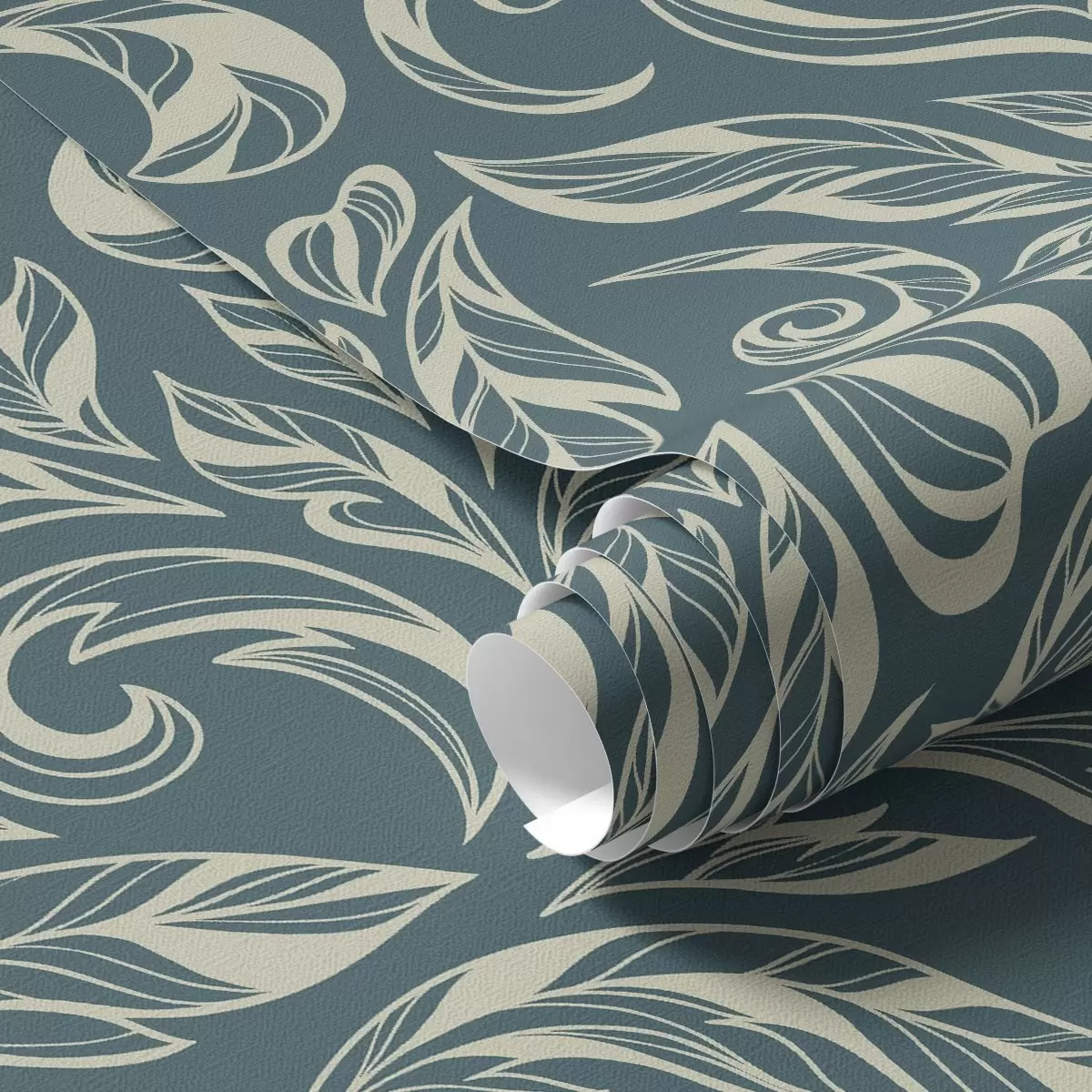 Papier peint Motif feuillu composé de lignes claires sur fond bleu-gris a00940