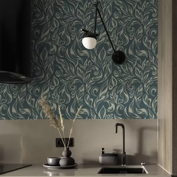 Papiers peints Motif feuillu composé de lignes claires sur fond bleu-gris Nr. a00940