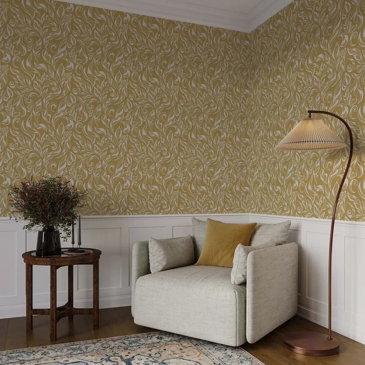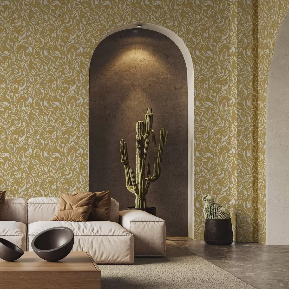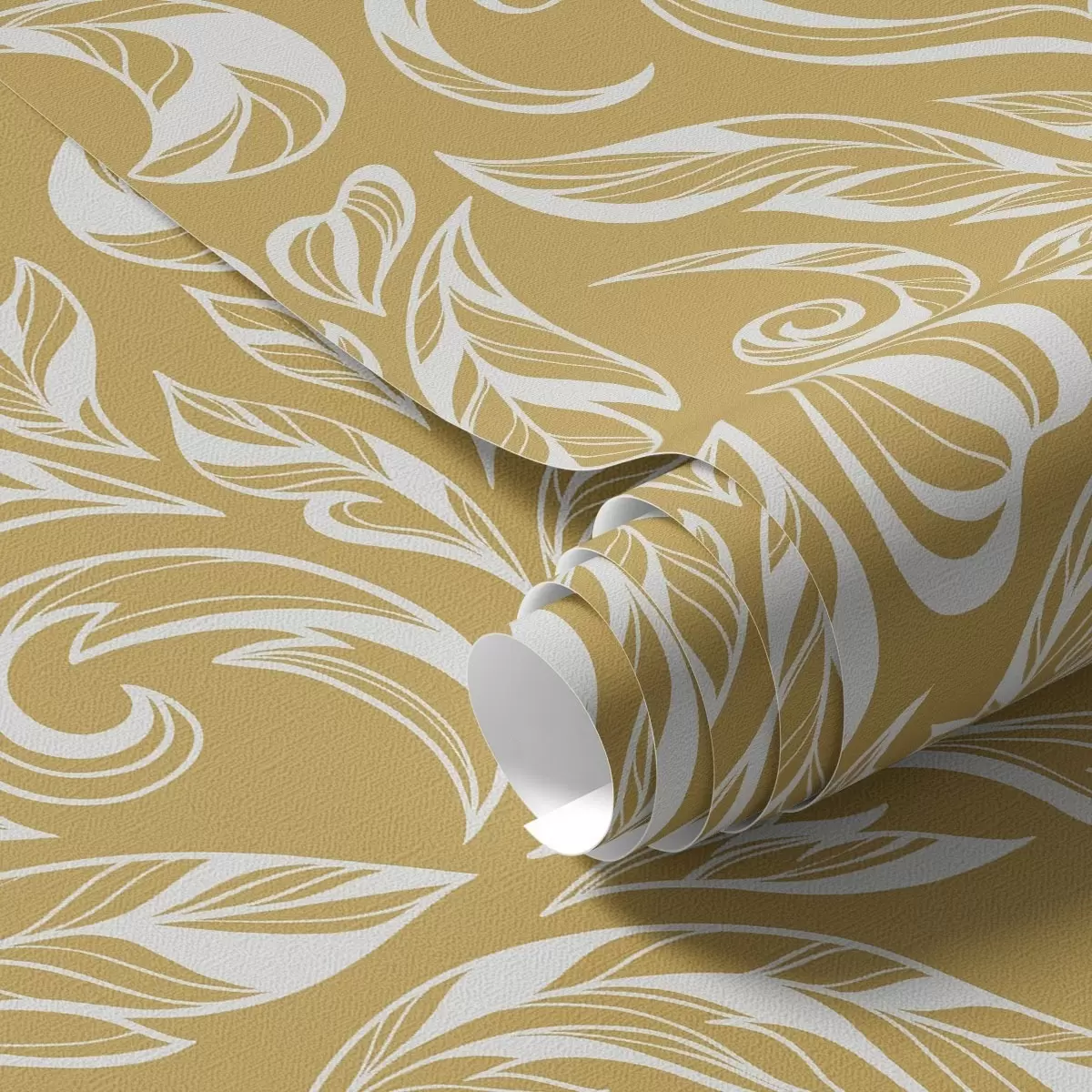 Papiers peints Ornement feuillu blanc crème sur fond ocre chaud Nr. a00940v1