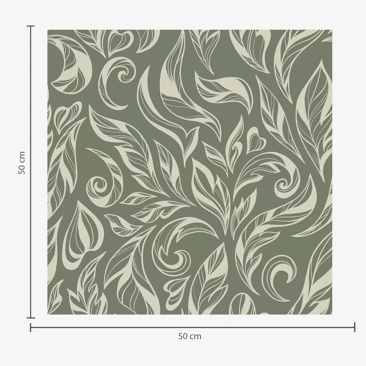 Papiers peints Ornement feuillu crème sur fond gris verdâtre Nr. a00940v2