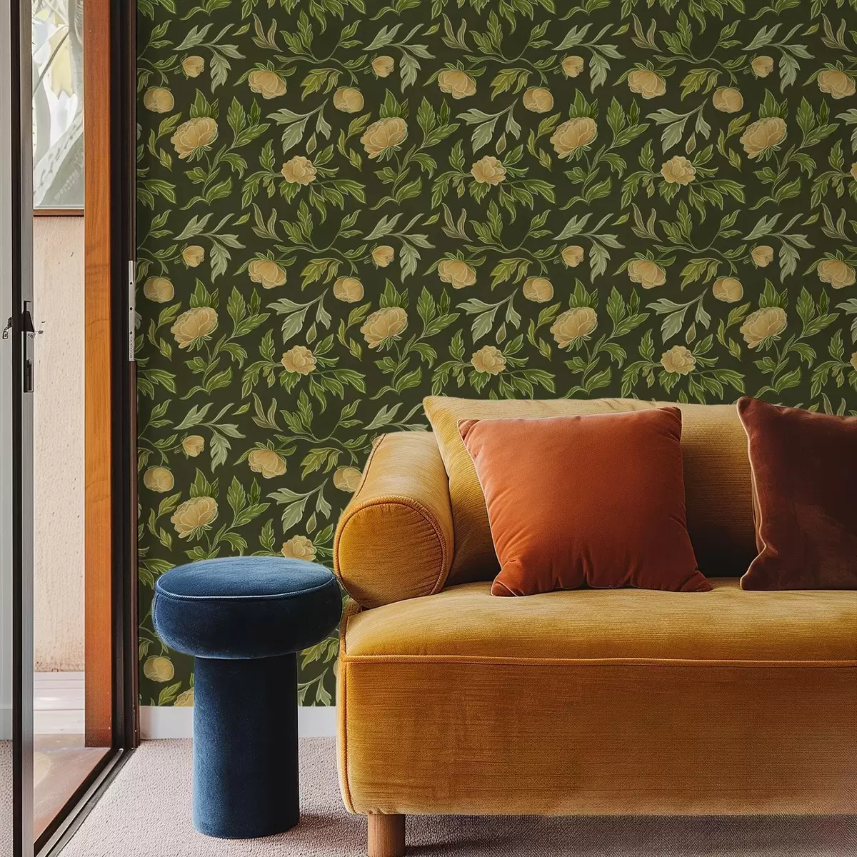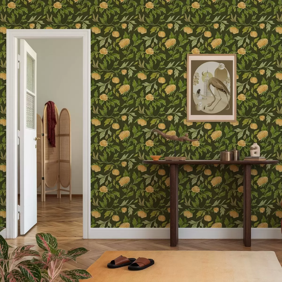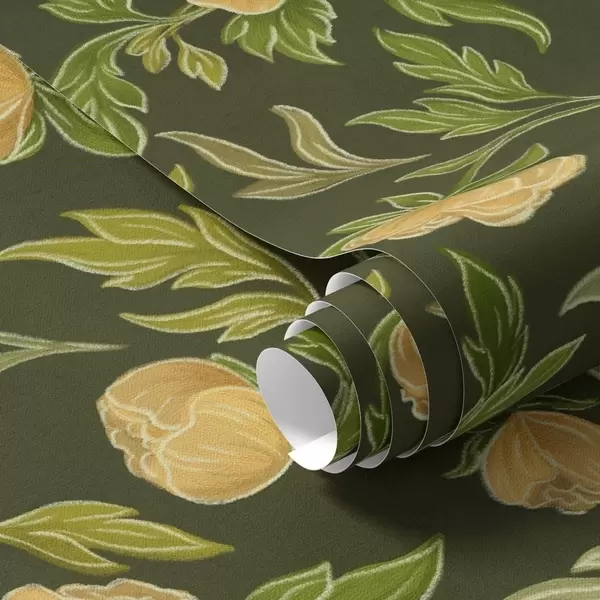 Papiers peints Pivoines jaunes sur fond vert foncé intense Nr. a00942v1