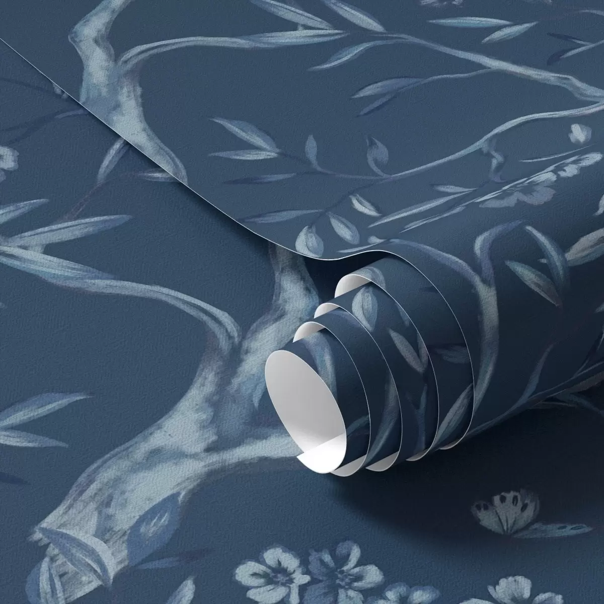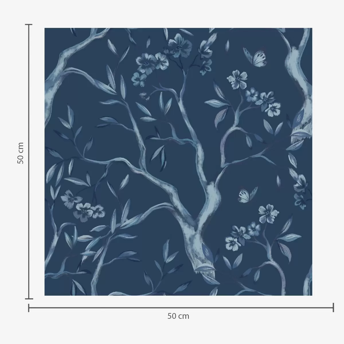 Papiers peints Branches fleuries bleues avec des papillons sur fond sombre Nr. a00951v1