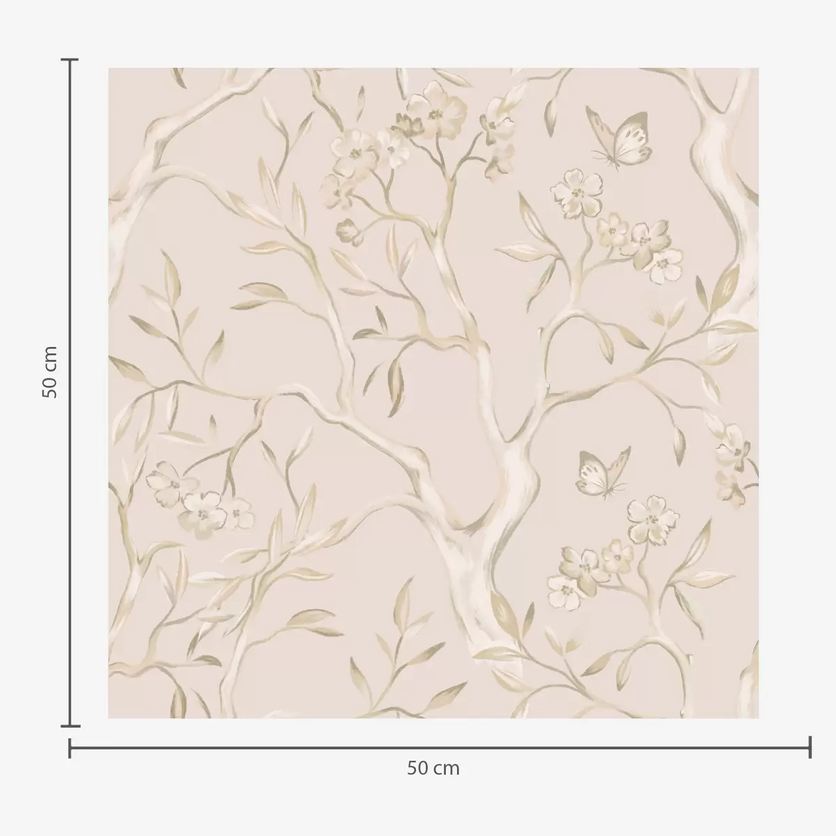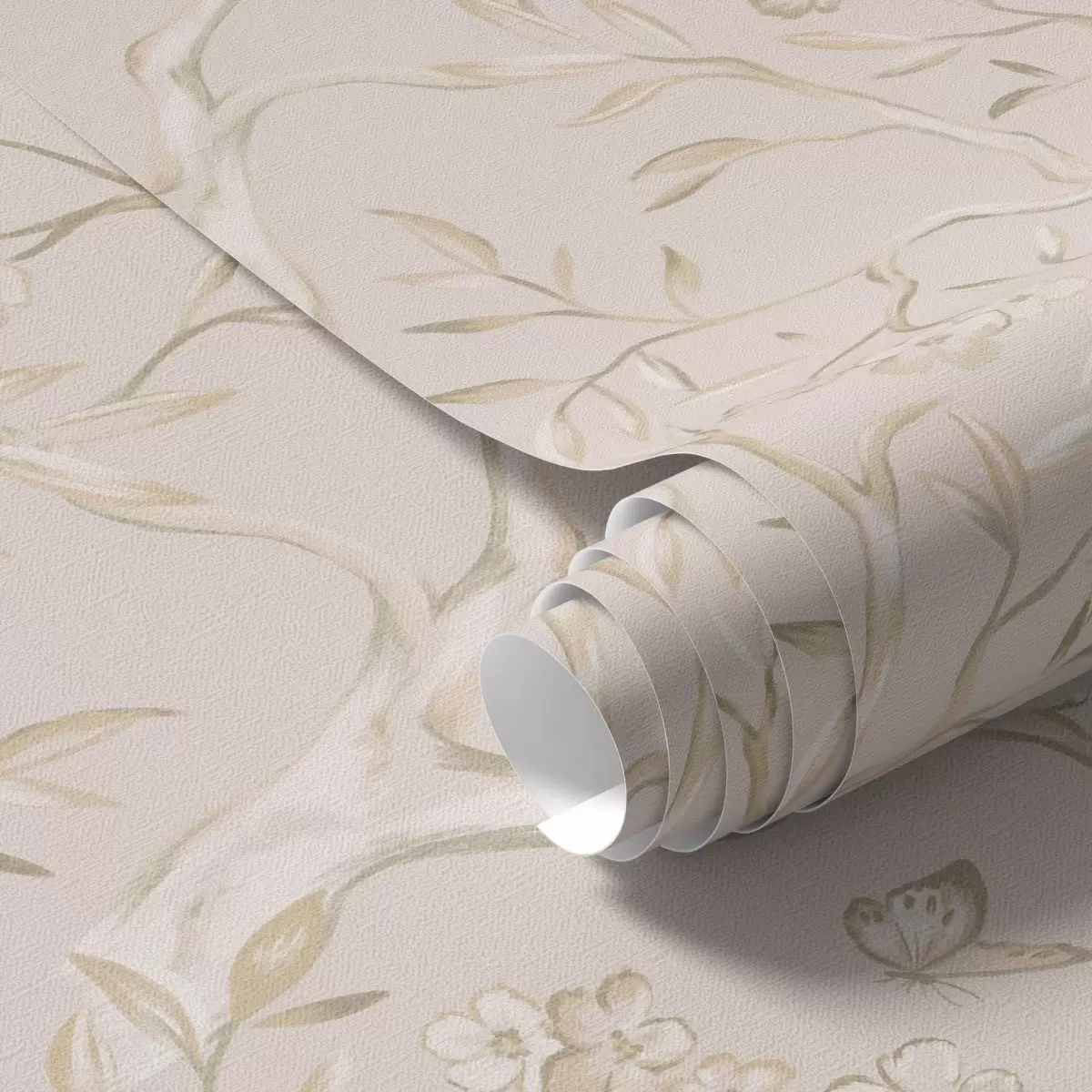 Papiers peints Branches fleuries beiges avec des papillons sur un fond doux Nr. a00951v2