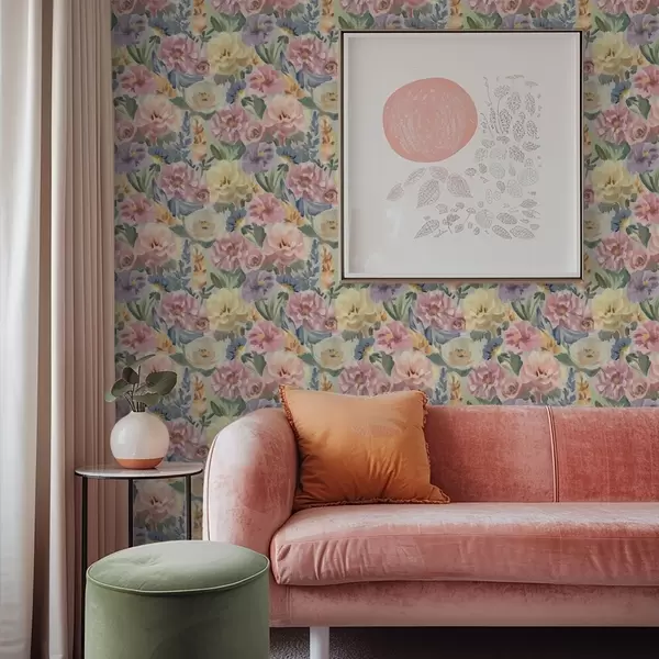 Papiers peints Fleurs au pinceau pastel estompé, palette de couleurs douces Nr. a00954